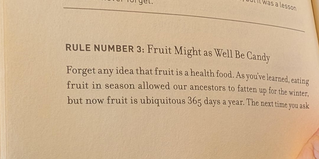 Especially the “fruit is just candy” part. There is an immense difference between the way I would feel after eating three apples for breakfast vs. three Pixie Sticks.