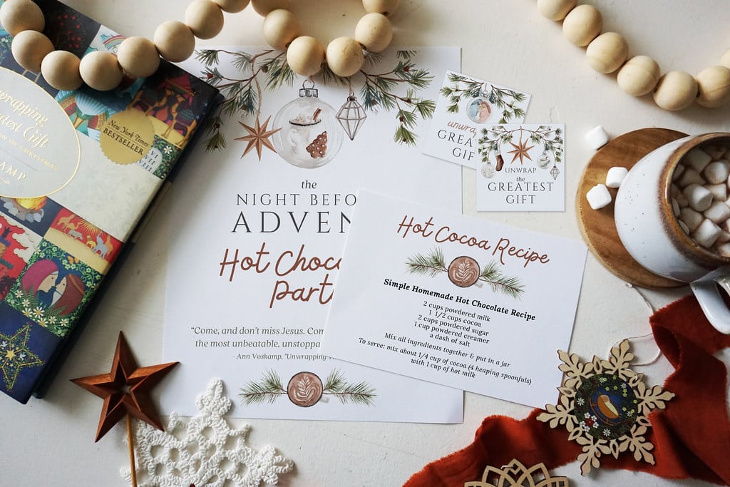 Everything (FREE!) you need for the Annual Tradition of a “Night Before Advent” Hot Chocolate Party, completely redesigned, all FREE GIFTS for our email list subscribers!