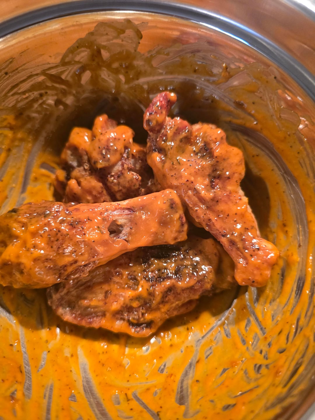 Full disclosure, frozen wings from Costco, Kirkland brand…thawed them for 3 hours then oven baked.First pics are fresh out of the oven, others are tossed in sauce. My own attempt at a spicy garlic similar to BWW's.by pretendadult4now 1 Comment Fuzzy_Welcome8348 3 months ago Still got it 💯