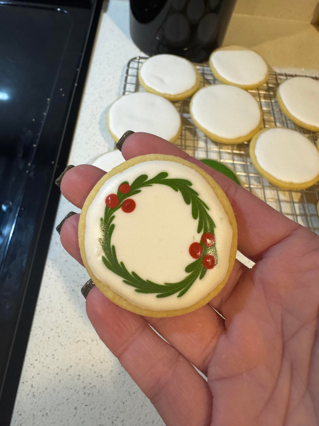 Spent hours yesterday and today trying to practice wet on wet and transfers. My kitchen was a mess, I was exhausted and over it so I grabbed a bowl of black royal icing, a few paintbrushes and sat down to see what I could do. Thinking I’ll keep exploring this method.