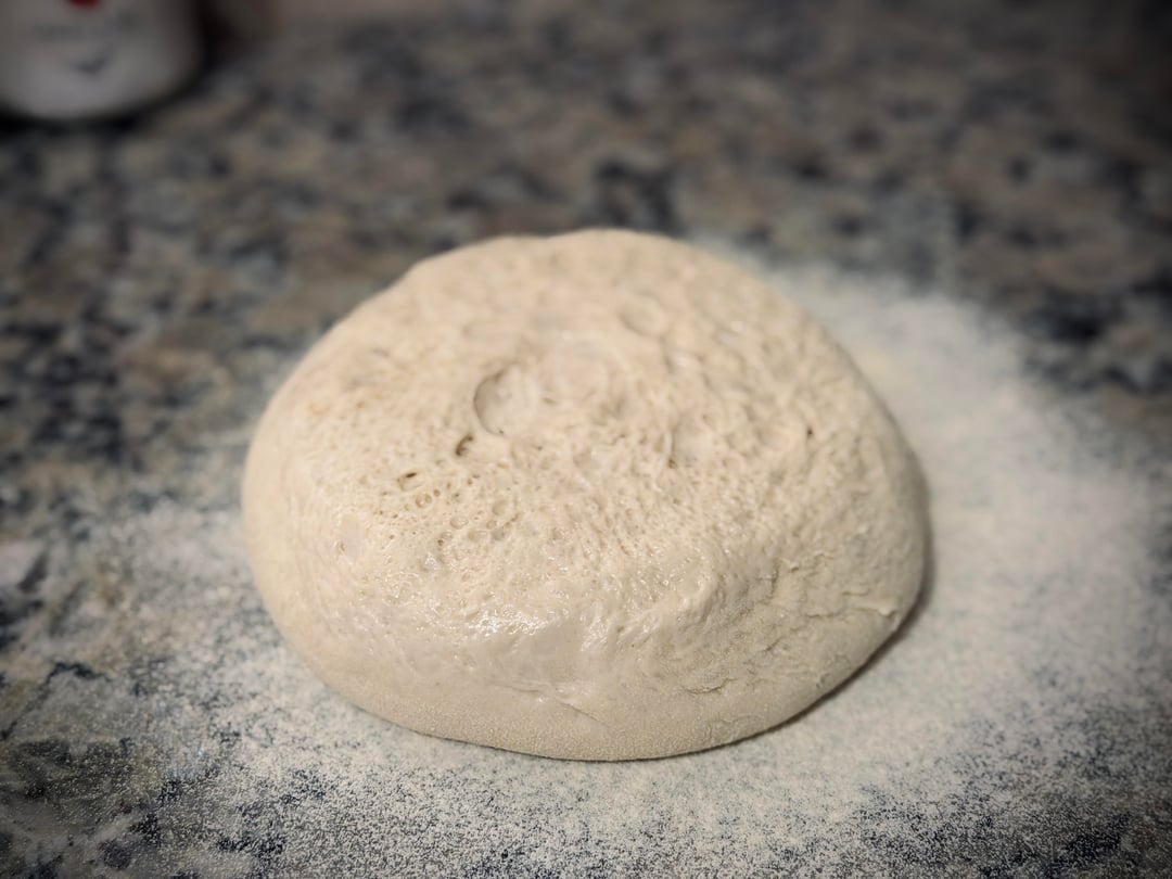 Blend of KA Sir Lance (we’re besties), Caputo Americana, and Cairnspring Mills Edison AP. Bulked for five hours, slept in the fridge for five days. 62% H2O. 3% salt. 3% oil. 1.5% Colombian grade diastatic malt.