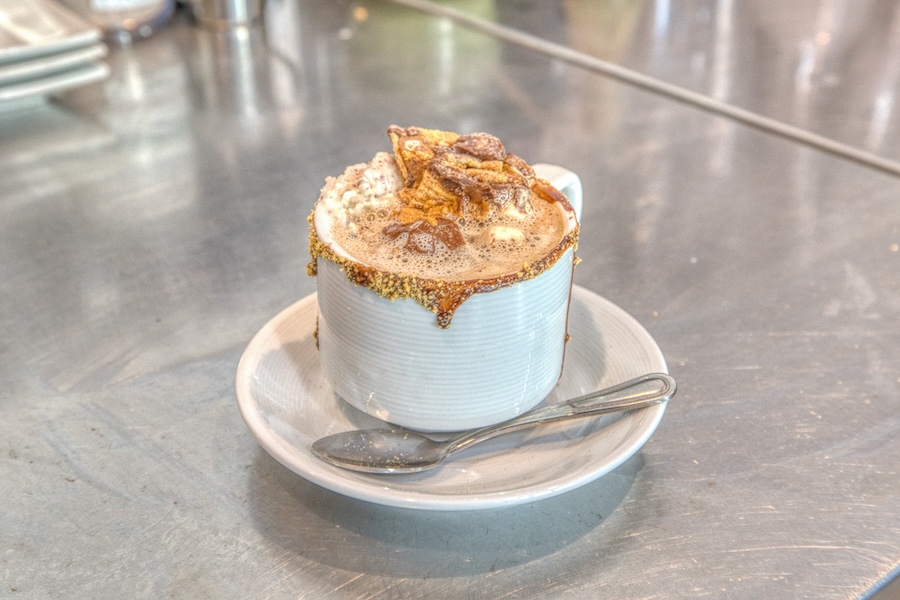 The menu features rotating gelato flavors, affogatos, cake lattes topped with actual slices of cake, homemade tiramisu and rainbow cookie cake, cannolis, olive oil cake and even house-made puppy gelato.