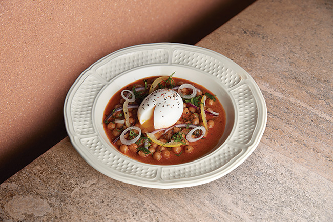 Ragoût de pois chiches mijotés aux épices, œuf mollet, is one of the plats on offer at Sapid © Atelier Mai 98