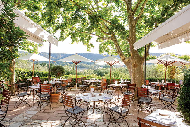 The terrasse at La Bastide de Moustiers in Provence, is prepared to welcome guests for lunch © Pierre Monetta