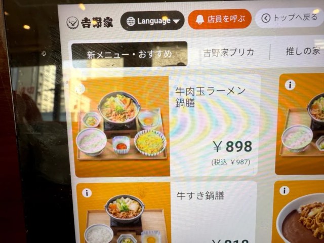 ▼ You can see 牛, the kanji for gyu, meaning “cow” and in restaurant contexts “beef,” on the screen, and the photo is also a tip-off that this is no mere beef bowl.