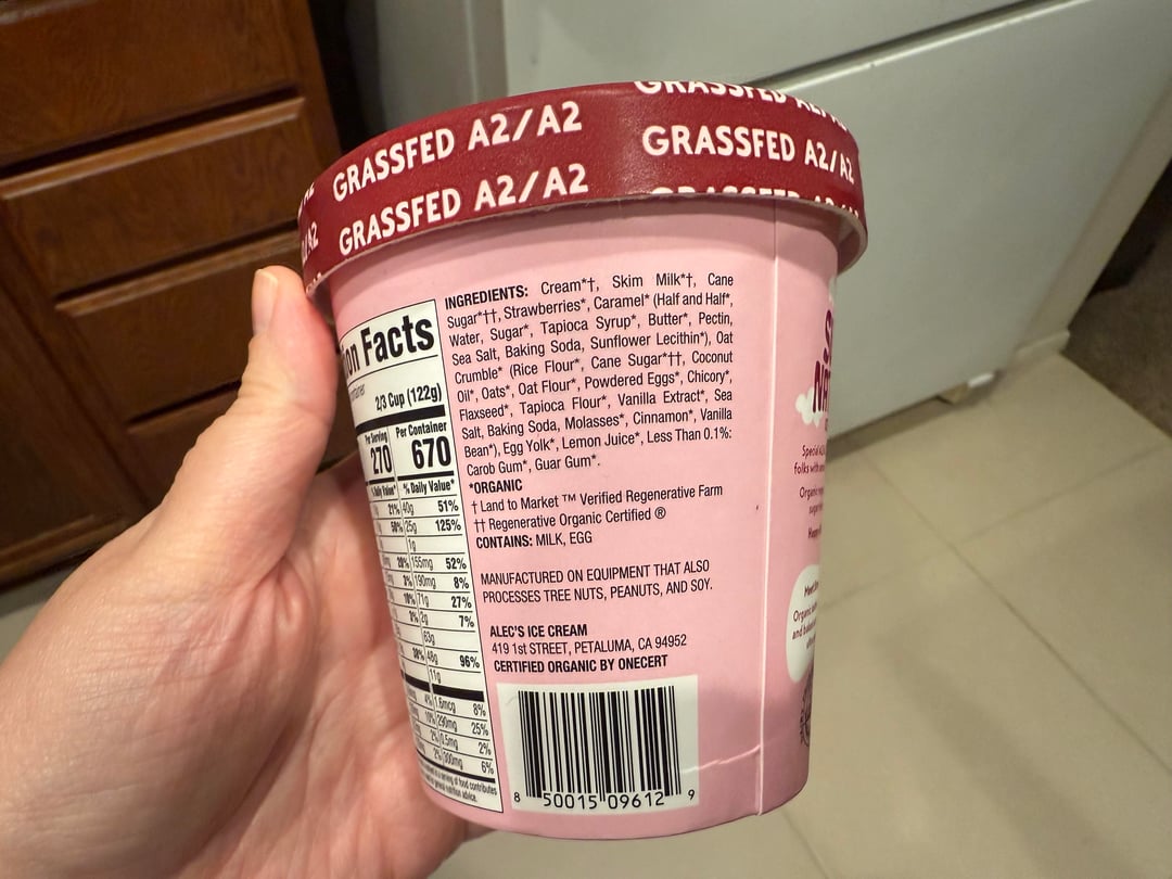 This is the second flavor I’ve tried from Alec’s. This one was very strongly strawberry flavored, with nice chunks of oat crumble. It’s delicious! I love the texture of the strawberry pieces and the oat crumble. I’ll have to try more flavors from this brand, both I’ve had have been excellent.