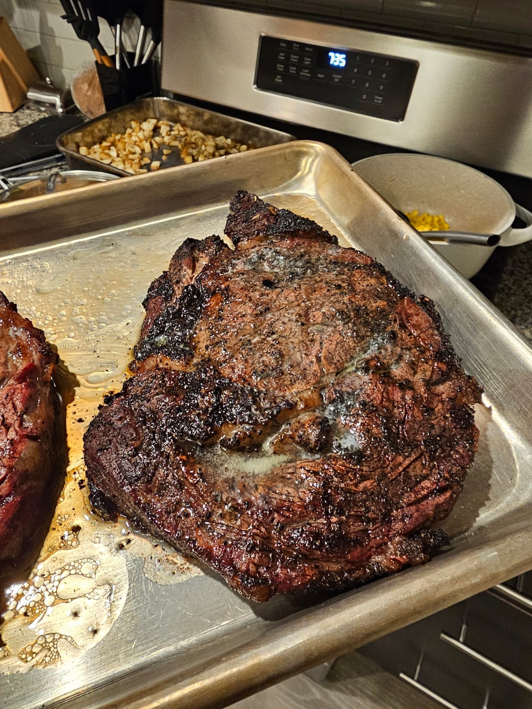Did a reverse sear on these two beautiful steaks. The darker one I gave it the charcoal carnivore seasoning. Im a really big fan of it. Best steak ive made/had. Dry brined them this morning.