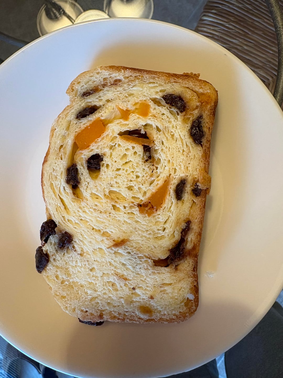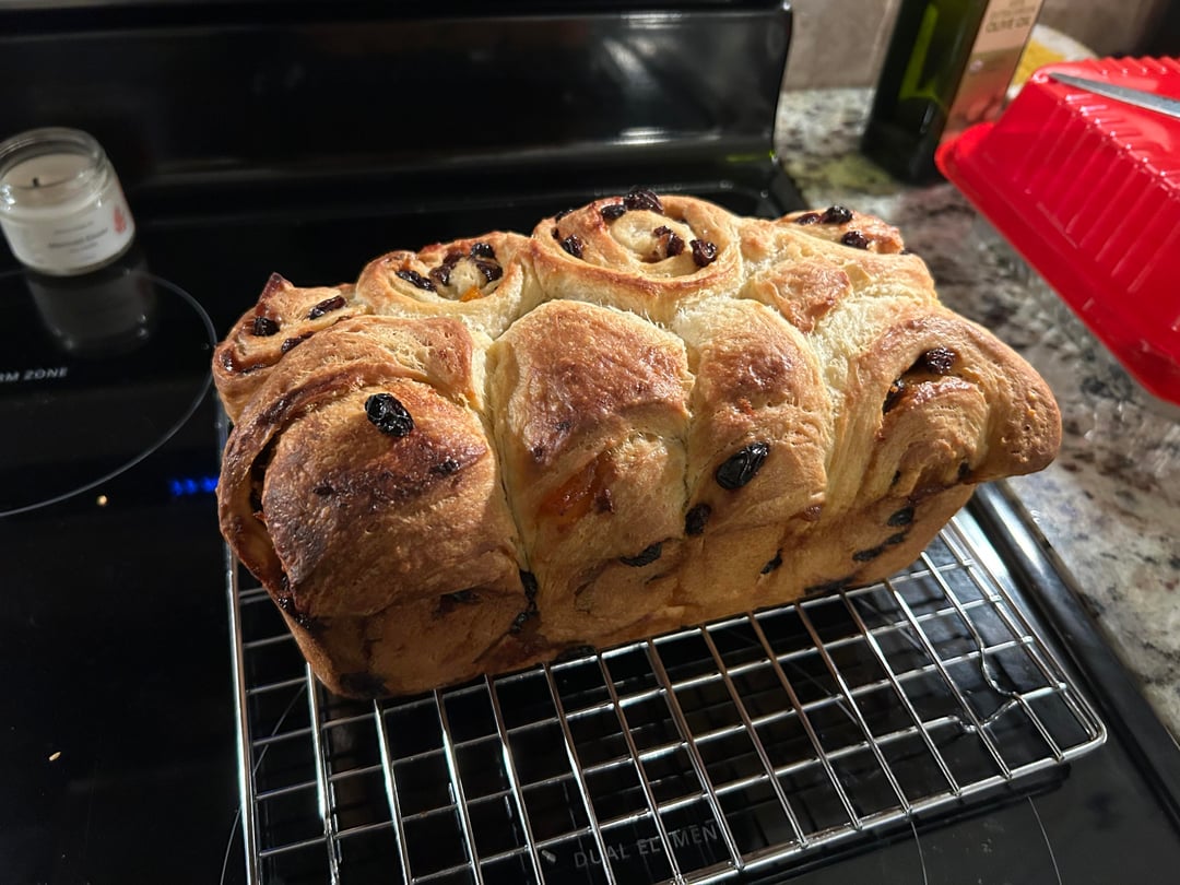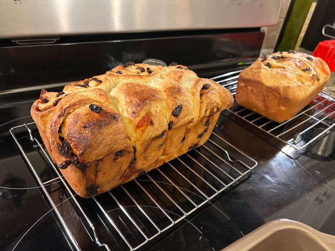 Couldn’t complete the step of cooling the bread hung upside down since I can’t put a skewer through a bread tin, but it ended up as a brioche with nice mix ins basically! The family loved it.