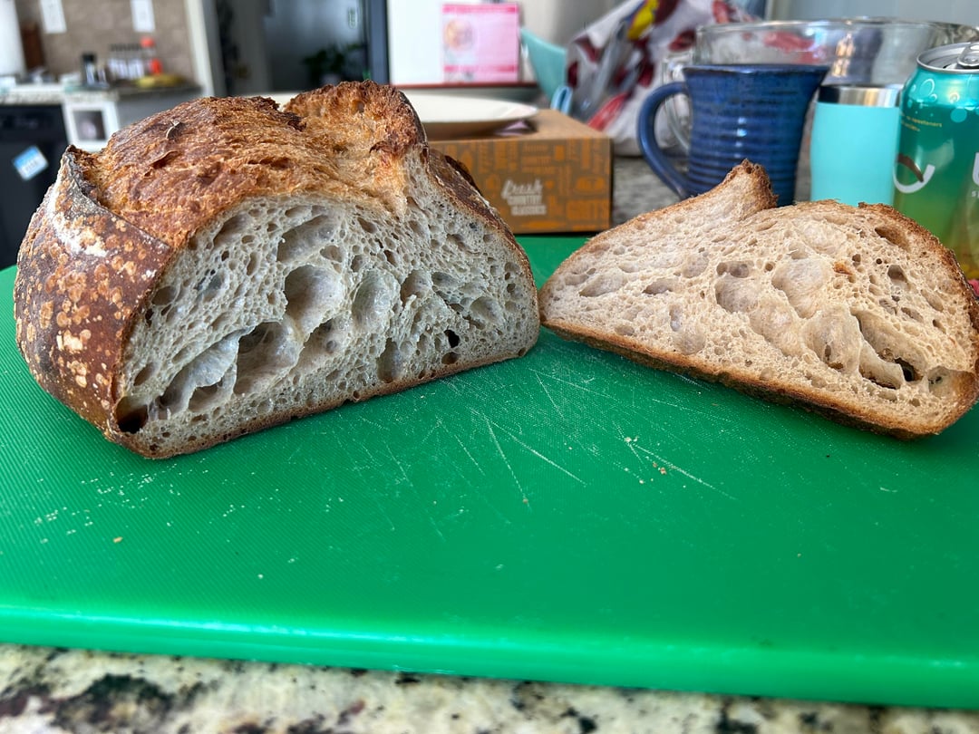 Basically, nothing ever works in my kitchen the same way it does in other people’s apparently. Fermentation isn’t an issue at least, my starter is strong, but building strength in dough is hard for me. Kneading just doesn’t work for me the way it seems to effortlessly for everyone else. No matter how dry the dough, it sticks like hell to my table, and the more I knead it, the looser, more tear-prone, and incoherent my dough becomes. My stand mixer also absolutely never kneads the dough into a ball. It just mixes the puddle until it becomes even more liquidy, seemingly becoming a sticky teary over mixed mess before it actually comes together at any point. I’ve settled on mostly doing stretch and folds and autolysing because… idk kneading magically just doesn’t work in my kitchen no matter how closely I follow instructions.