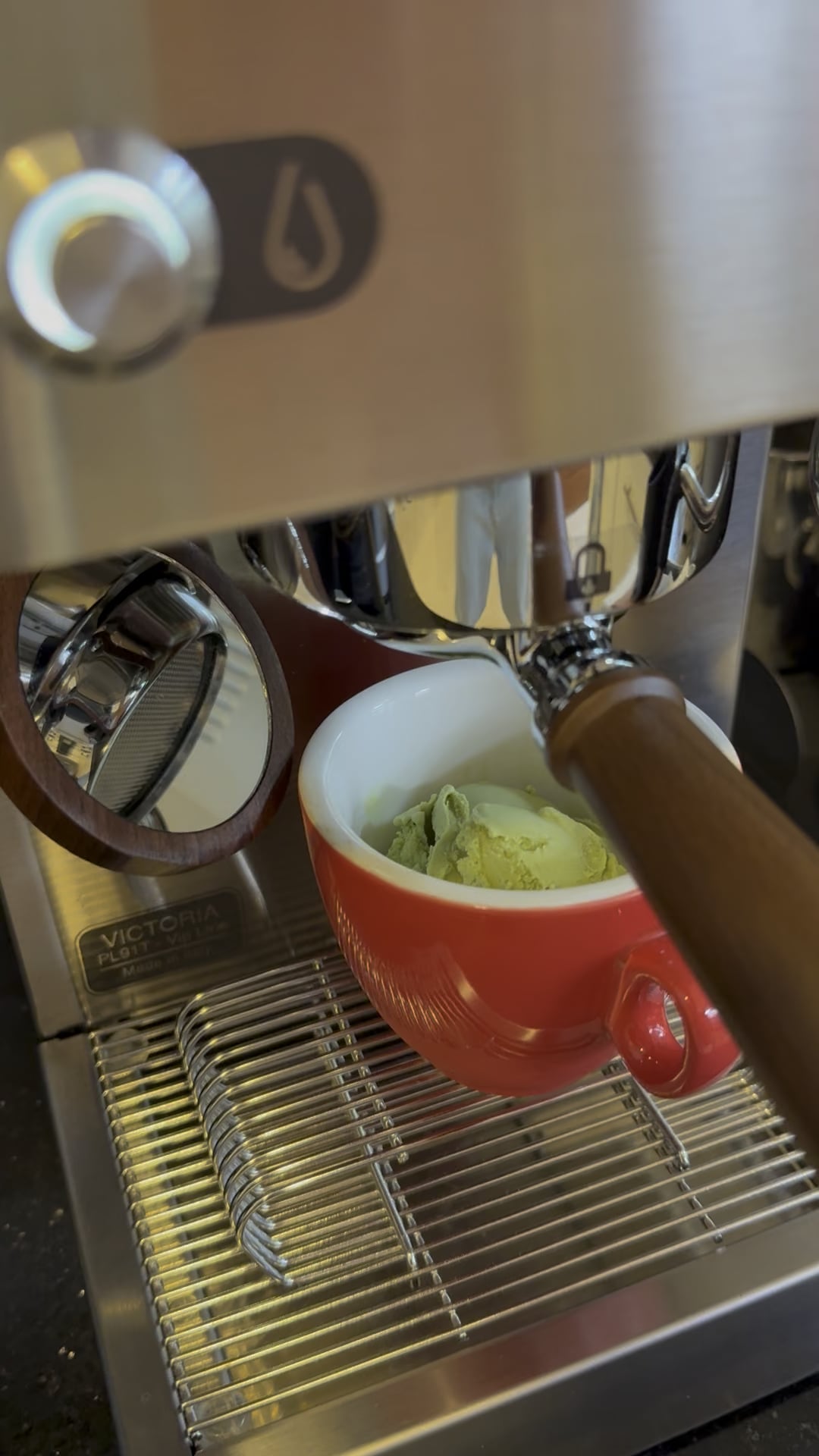 double shot + matcha ice cream and let ist melt a few minutes, then add 6oz milk and a tad whipped cream on top. been drinking this all summer. hazelnut ice cream is great as well.