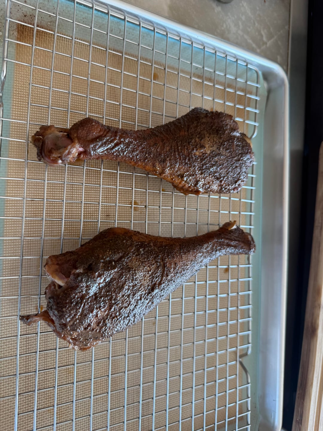They were delicious, good but not overwhelming smoke flavor throughout, just falling off the bone juicy yummy turkey.