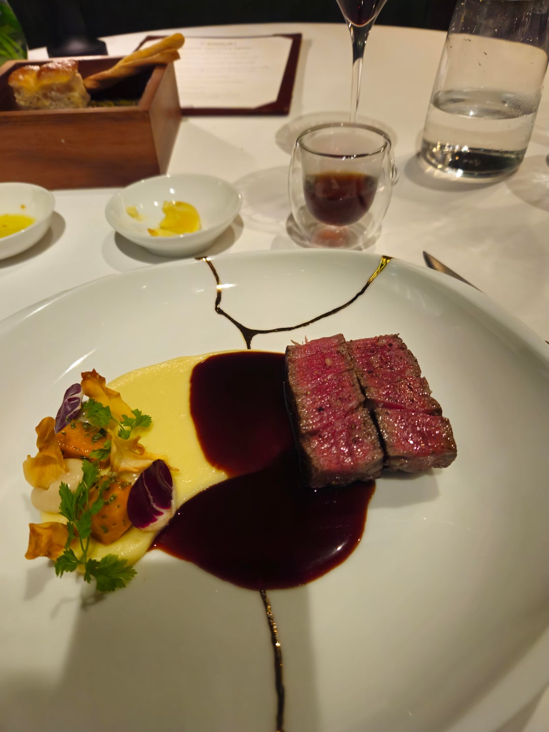 Last food item on the menu was M5 tenderloin. For me this was the best dish of all. Perfectly seared piece of meat and even though been tenderloin, incredible amount of flavor on it own. The purée, pumpkin and jus were perfect combination 10/10