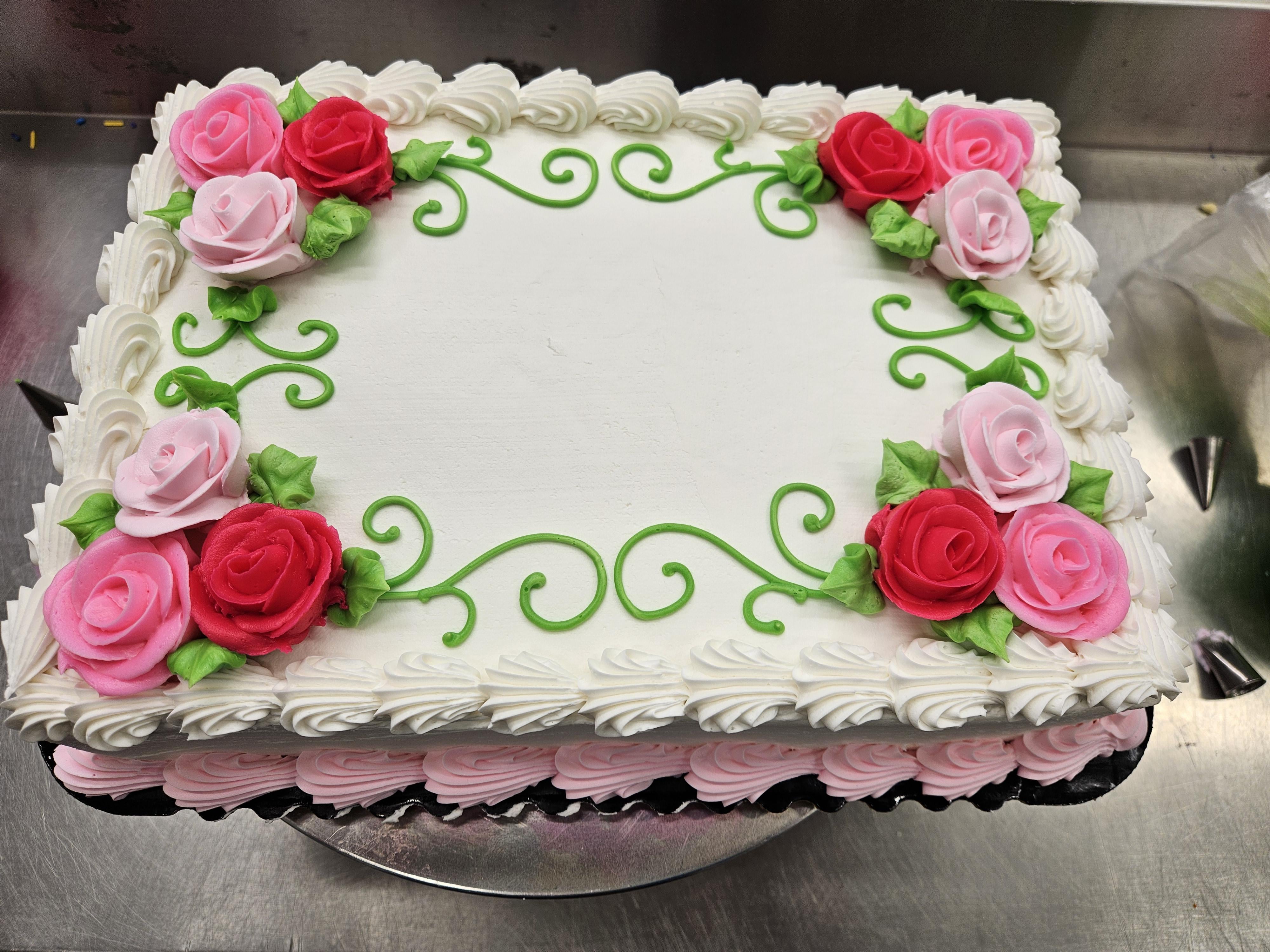 Sometimes cakes are pre decorated like this, then someone can buy it off the shelf, either plain, or request lettering