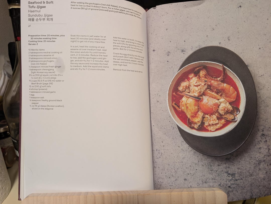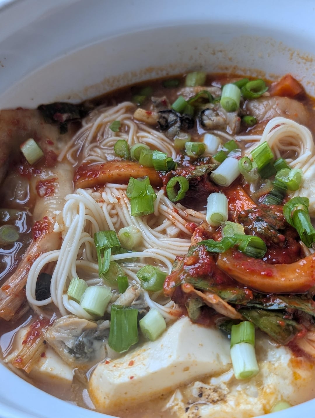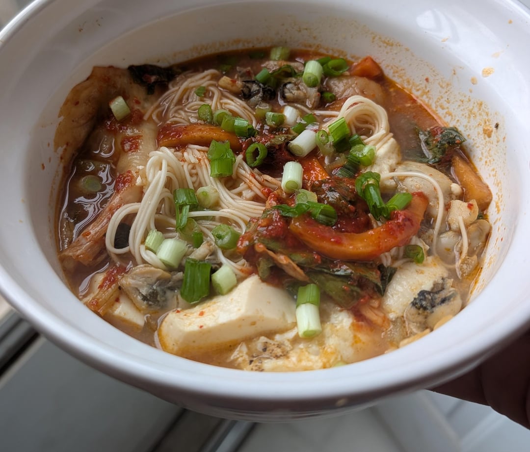 I had some frozen oysters I needed to use, so I used this recipe from the Phaidon Korea cookbook as a base, replacing the clams and shrimp with my oysters and adding some quickly cooked noodles.