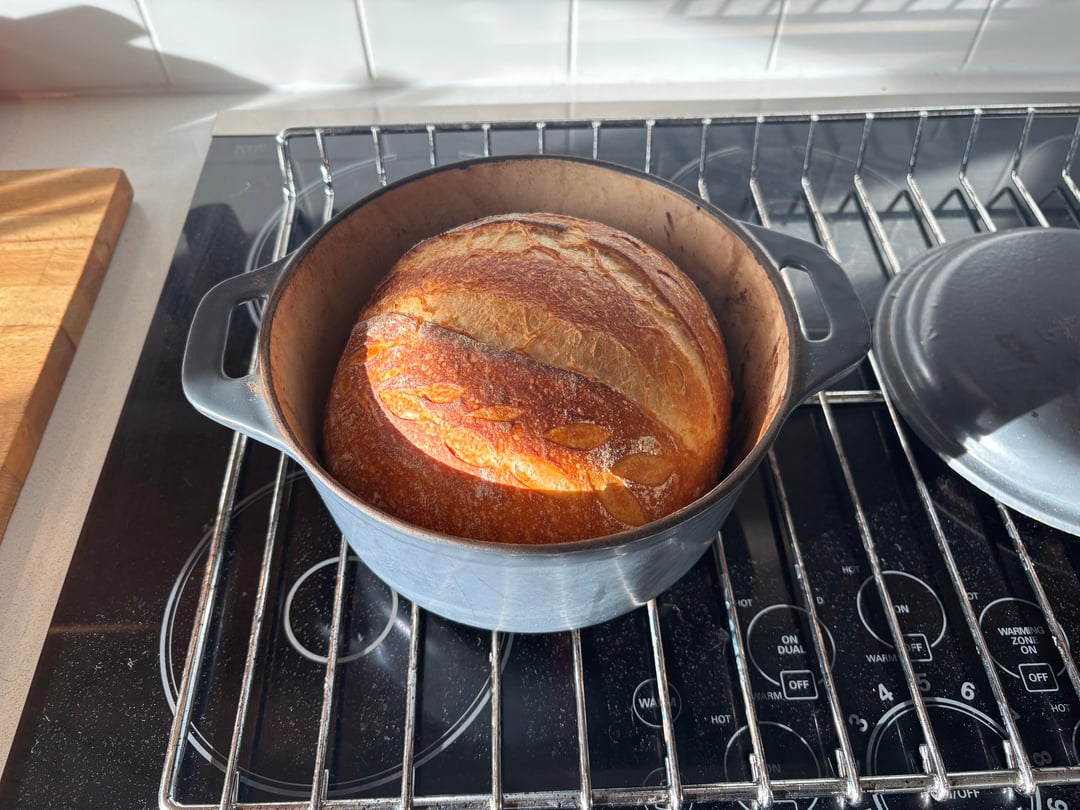 I will say though that I often had issues with my Dutch oven making the bottom of the bread much darker than the rest. If that is the case for you (second pic looks like it might be?), you can put a baking sheet on the next shelf down from the Dutch oven to shield it and prevent that. Just be aware that the Dutch oven might also preheat slower with it in there. I use an infrared thermometer to check for desired temp and I use my oven’s convection mode during the preheat to ensure it gets all the way up to temp in a reasonable amount of time.