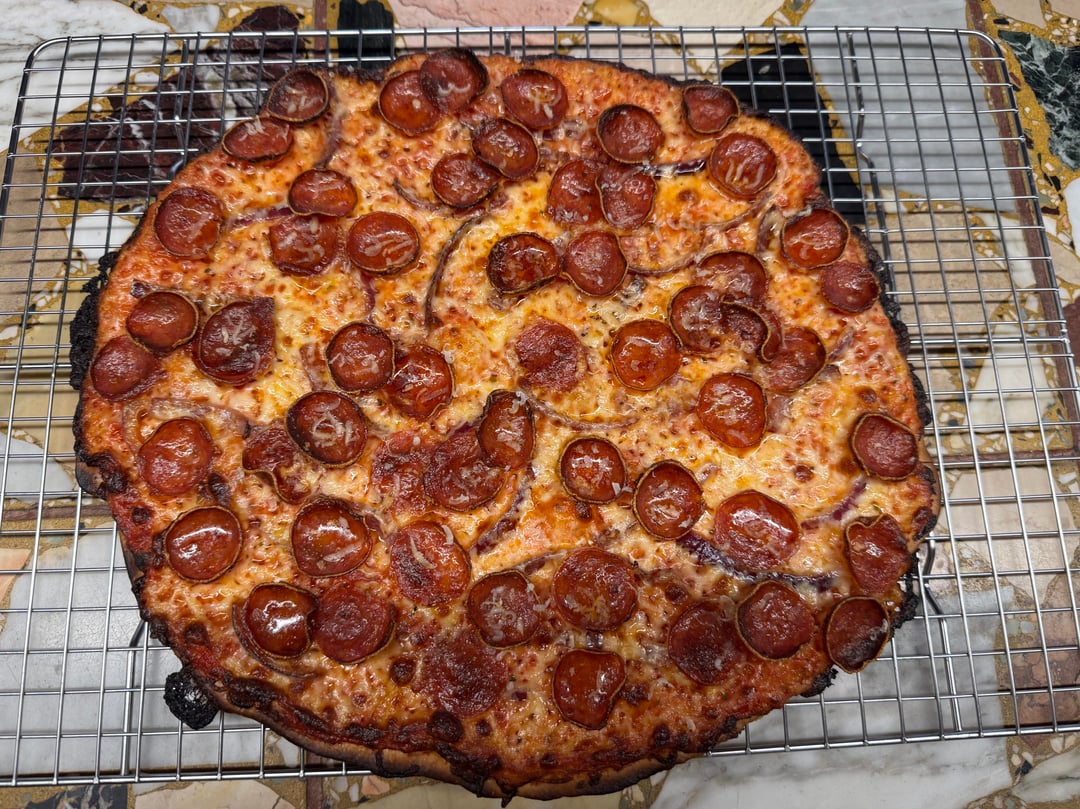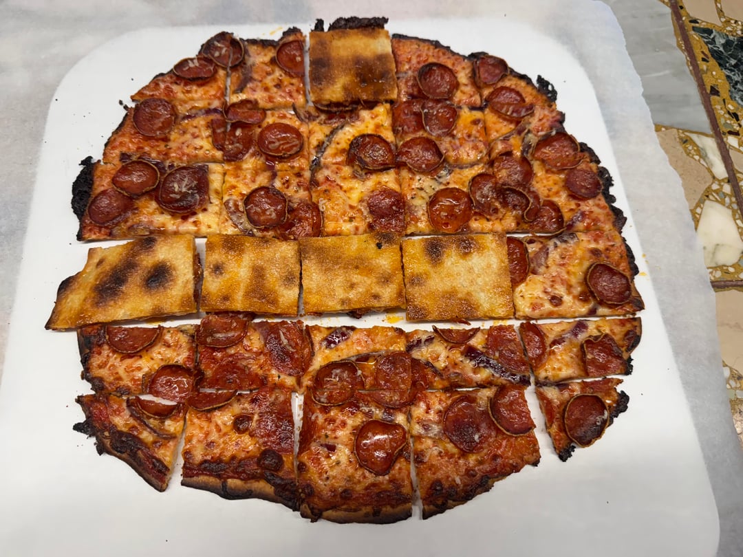 Tavern Style is the way to go. Super easy for the home oven. I make a similar style here on my pizza steel. I’m only ordering takeout pizza nowadays if I have a coupon.