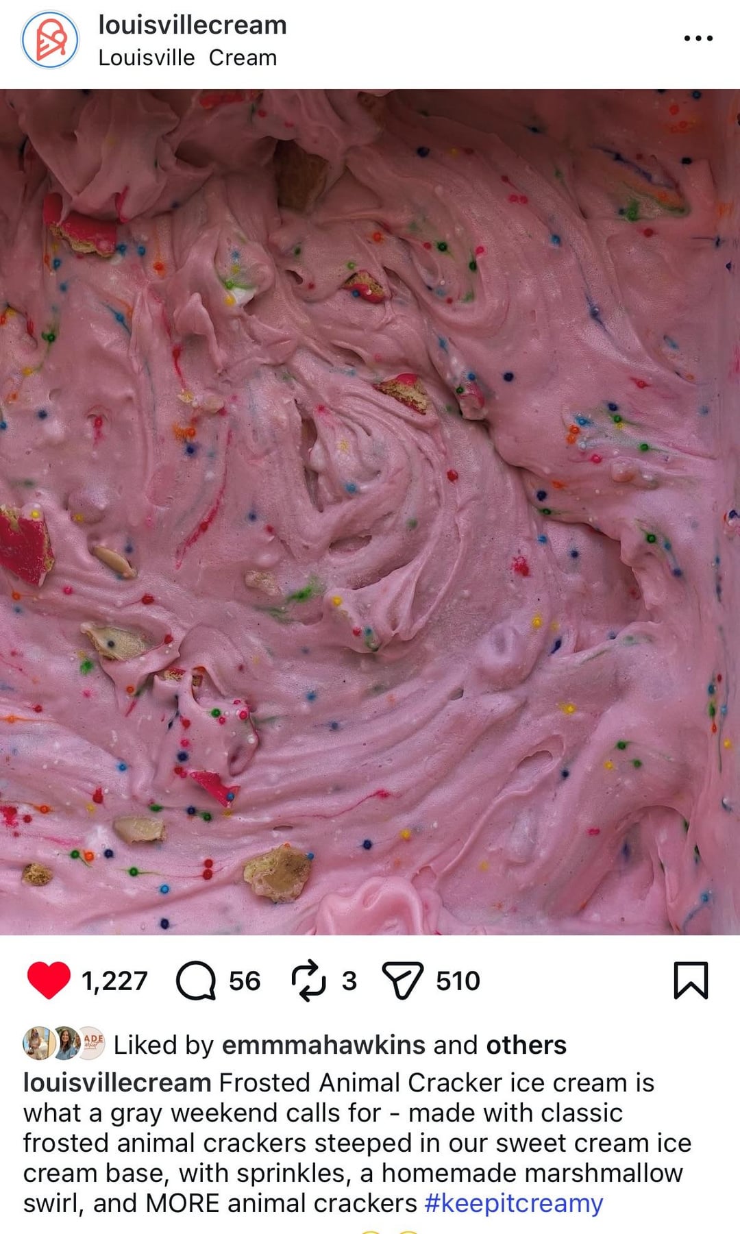 From Louisville Cream in Louisville, KY. It’s absolutely as good as you think it is. Frosted animal crackers are an elite and under utilized mix in.
