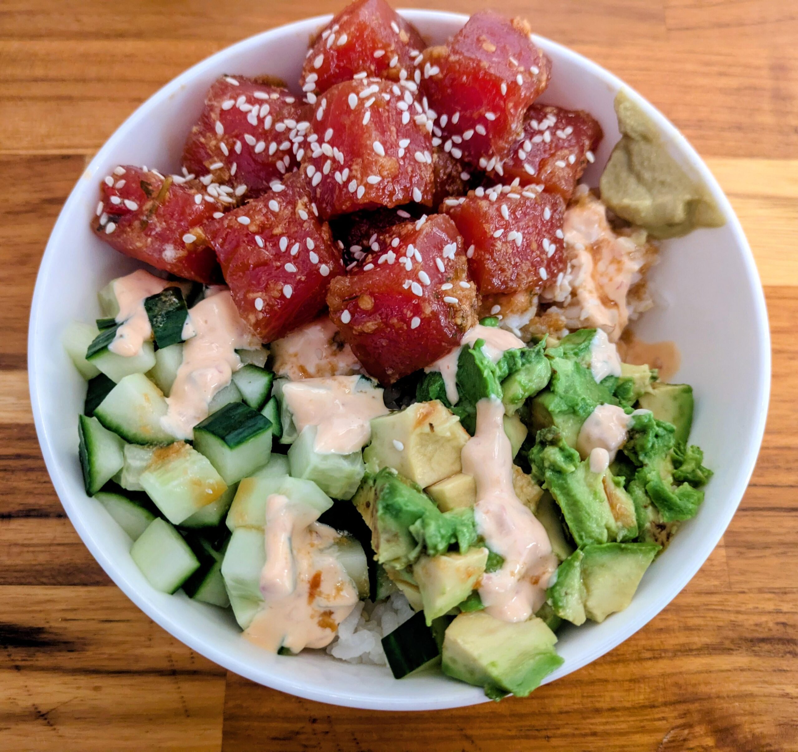 One hour marinated tuna with sushi rice, chopped cucumber and avocado, and homemade spicy mayo. Side of wasabi by Krissy_loo 1 Comment Unlikely_Macaron_284 2 weeks ago One marinade on the tuna that whole plate looks amazing