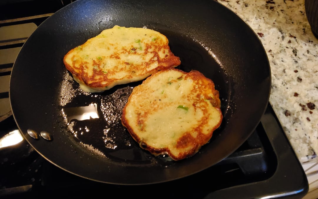 Made potato pancakes out of Thanksgiving leftover mashed potatoes. Kinda was trying to replicate Perkins potato pancakes.
