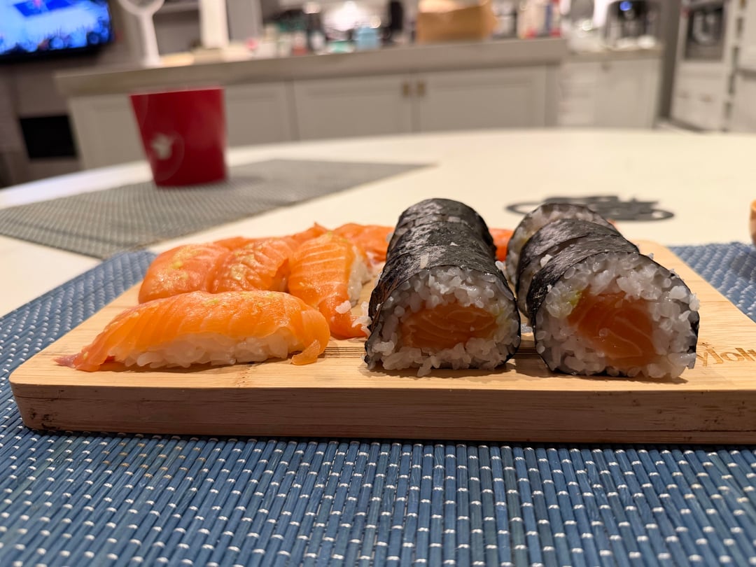 The maki was overstuffed, but I think that will be easier to correct next time. It was definitely tougher to spread the rice over the nori than I anticipated.