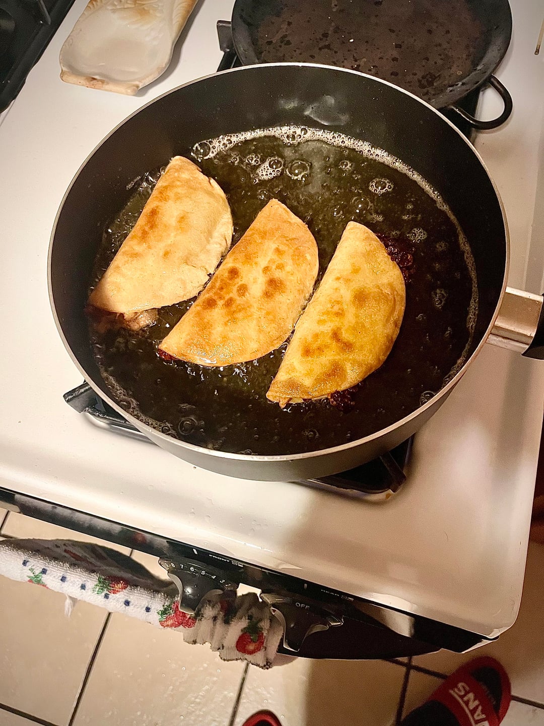too drunk to take more pics. it was tasty. i chopped up chicken breast and seasoned it. added it some mozzarella cheese and fried it vegetable oil. shit was yummy 😋by -ndi- Dining and Cooking