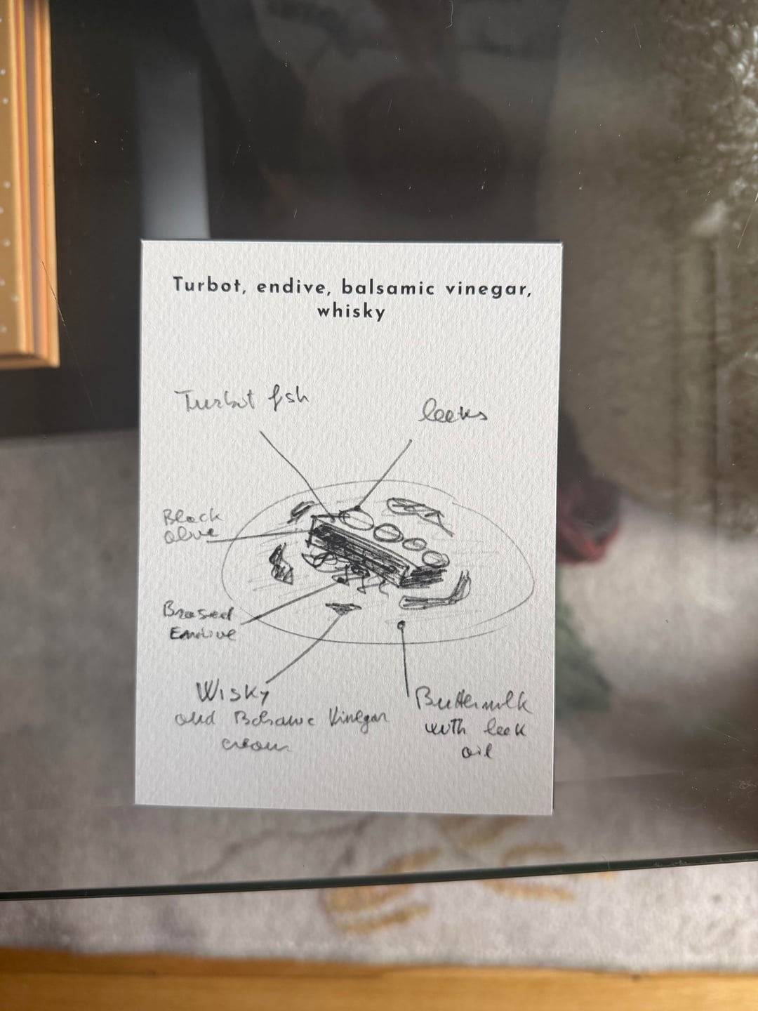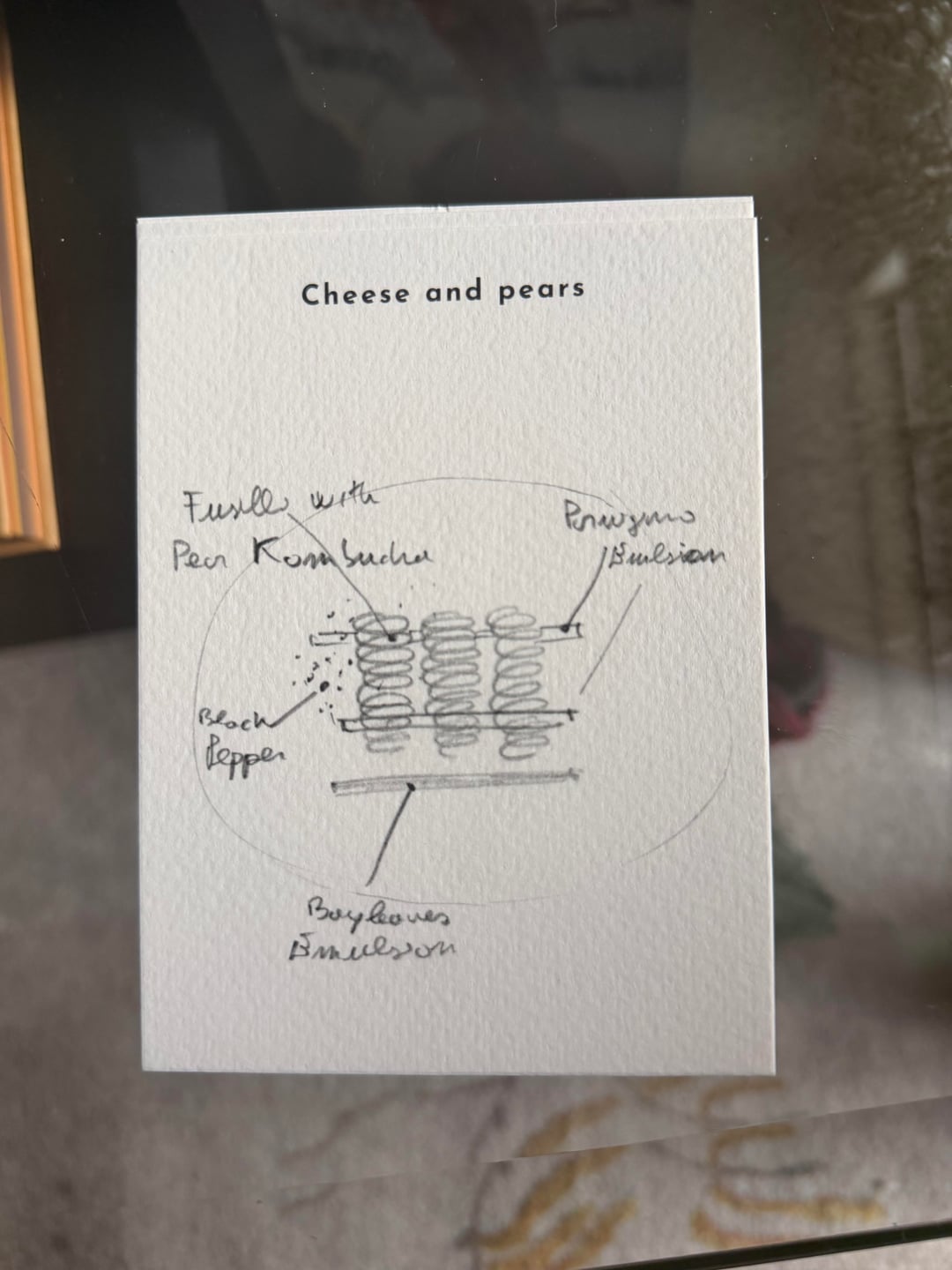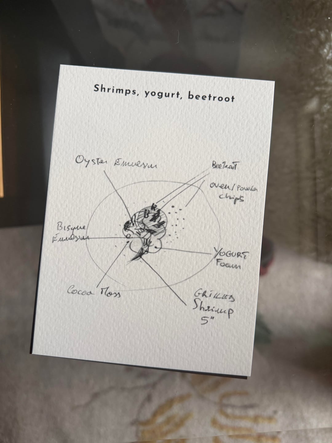 Went here with my wife a few weeks ago on a trip through the region. We did the Expression menu. They gave us the sketched out menu cards which I thought were cool so I attached each just ahead of its respective course.