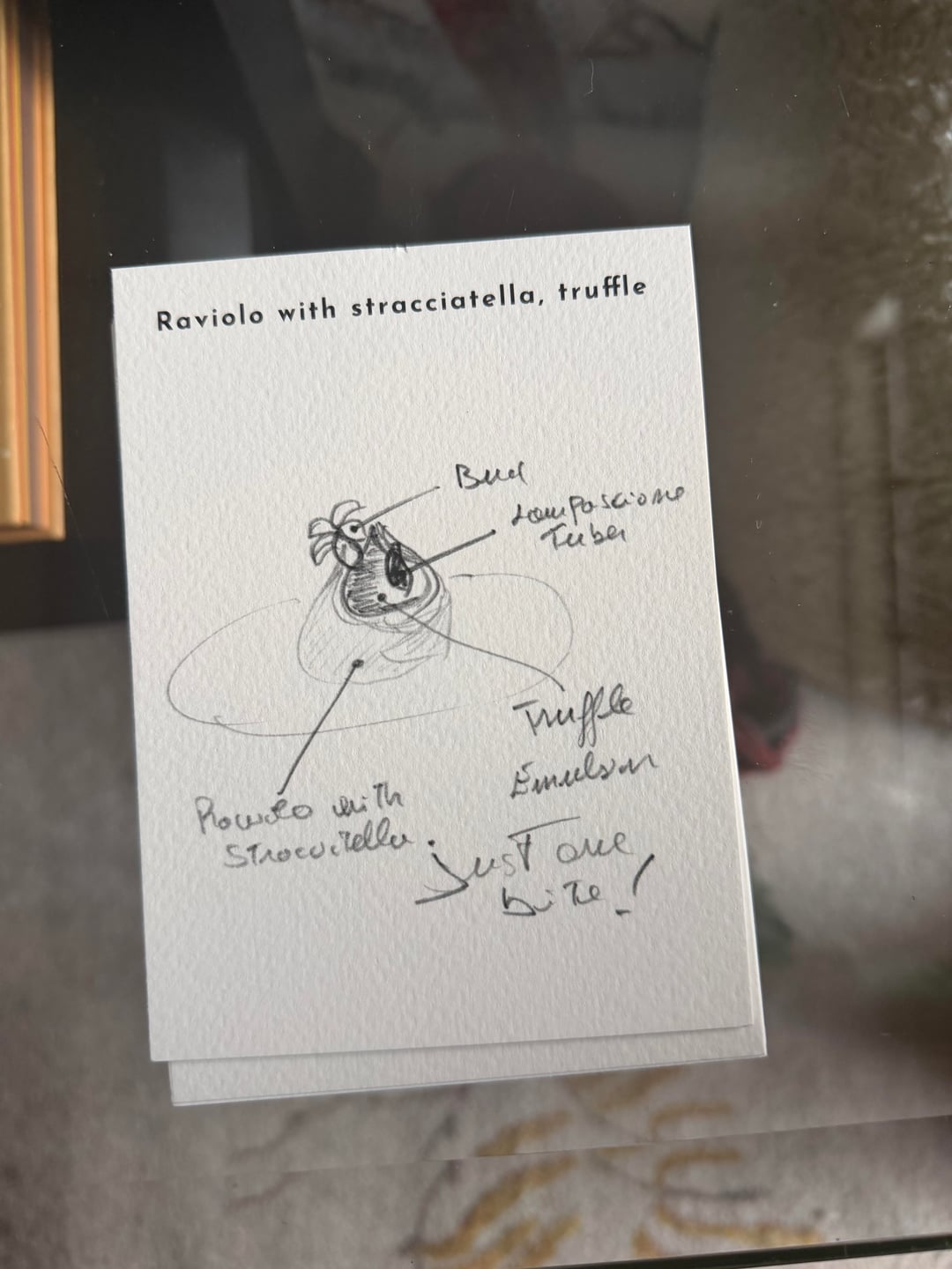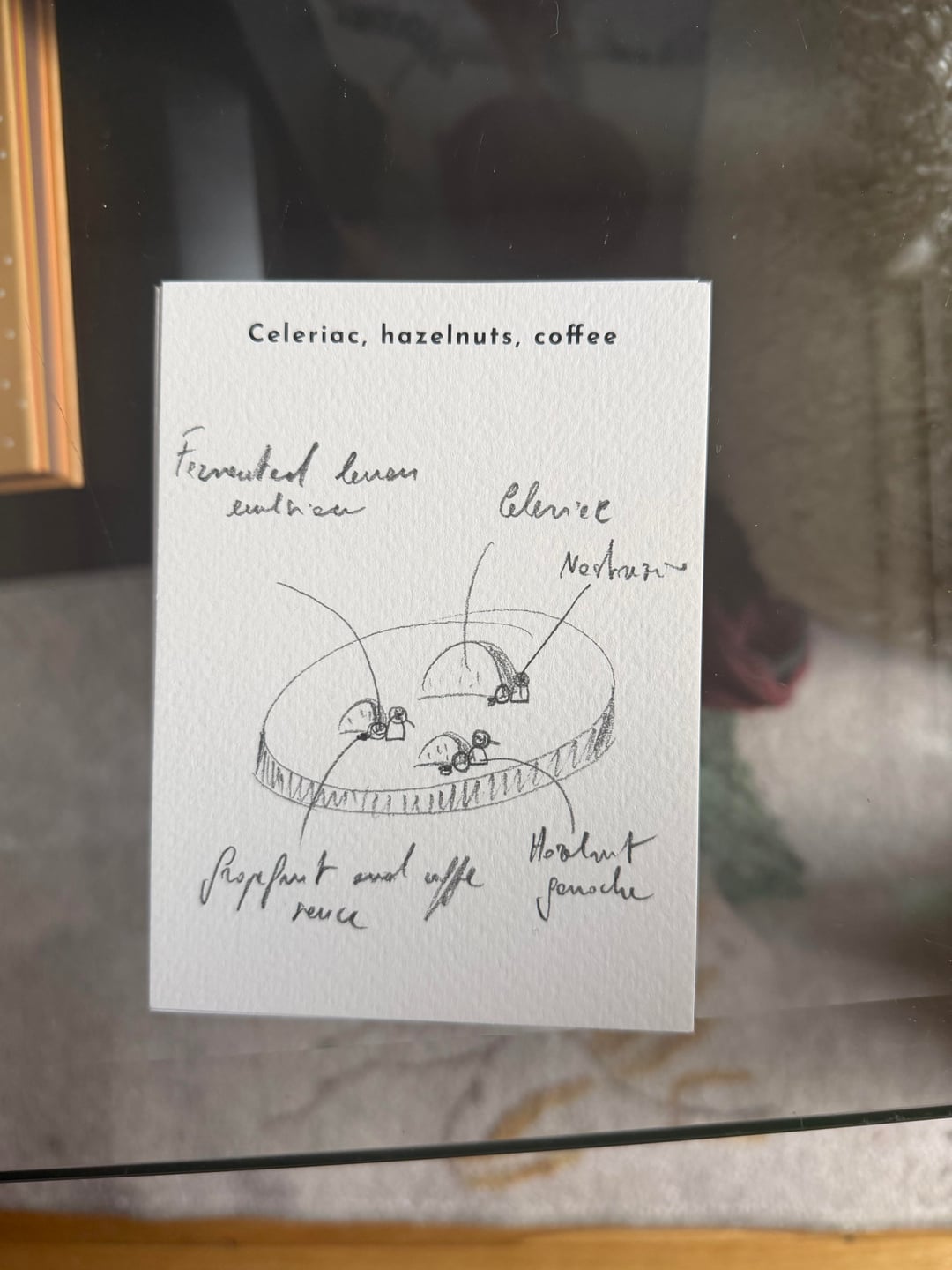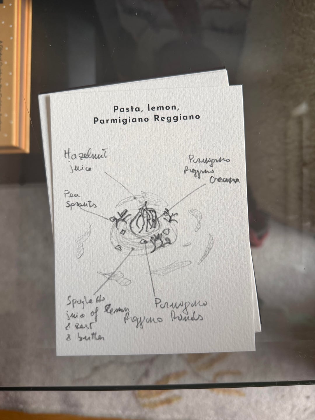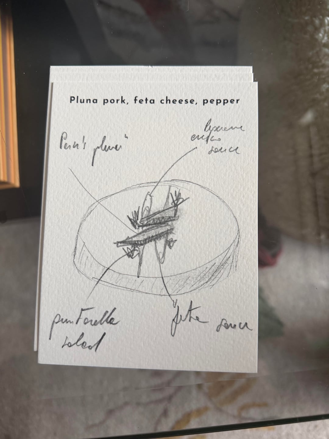Went here with my wife a few weeks ago on a trip through the region. We did the Expression menu. They gave us the sketched out menu cards which I thought were cool so I attached each just ahead of its respective course.