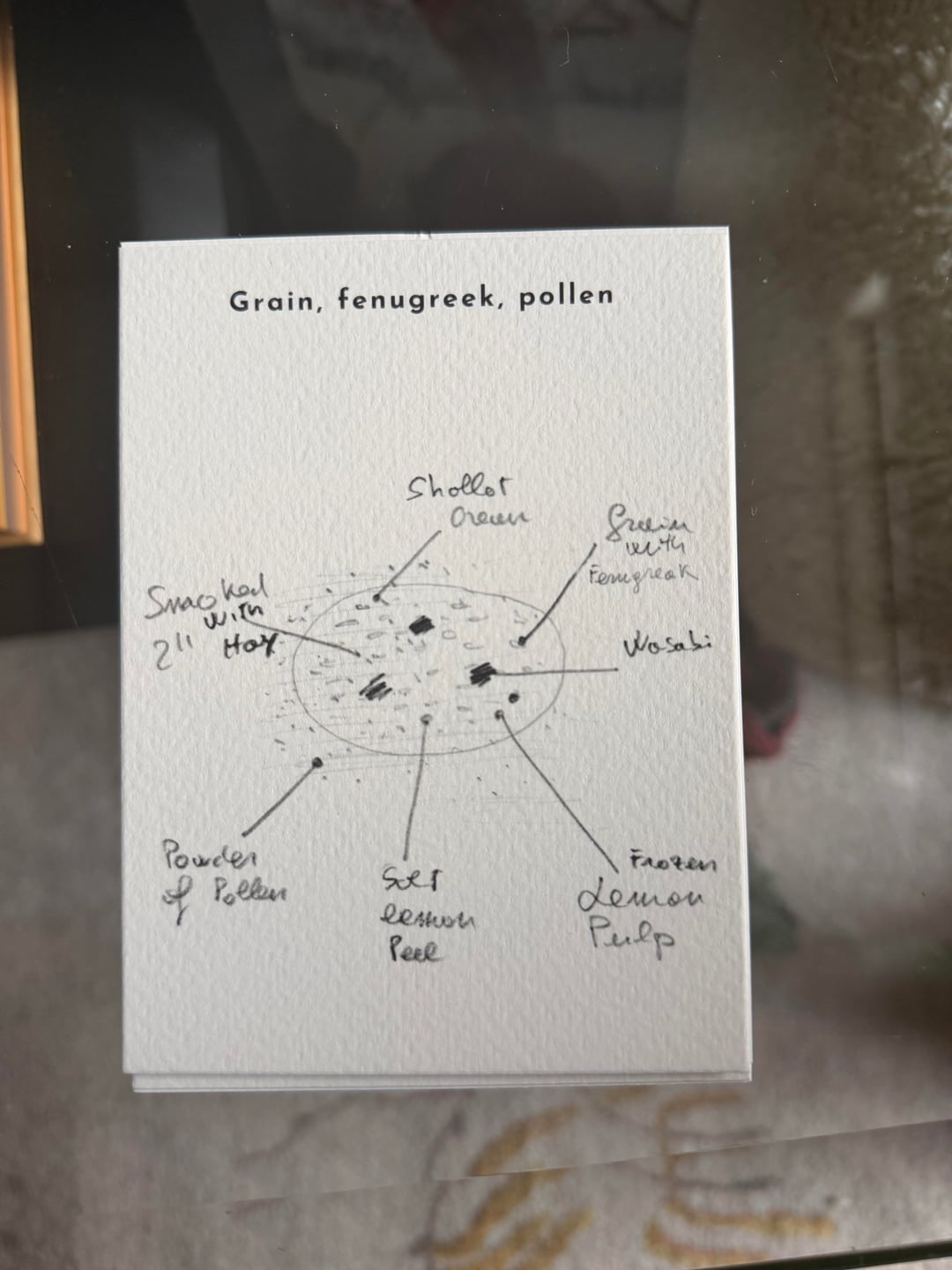You can kinda follow the menu in the pics but I thought the Cheese and Pears was the standout: fusilli cooked in pear kombucha with parm, pepper and bay leaves. So loud from the tart pear kombucha and nicely tamed with bay leaves & parm, also the fusili was pretty monster and intentionally was left with some teeth, loved the idea and very substantial for such a small few bites.