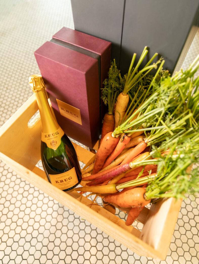 Like American legislators, wine lovers are a tough group to reach consensus with. There is one constant that the entire spectrum can agree on, though: Krug is the bomb. Anarchist natural wine garagistes grudgingly revere it, tech bros flash it for street cred and old timey oenophiles break it out on truly special occasions. The only downside (other than the price of course, which is…uhm…suitably elevated) is that it’s getting tricky to source. Once a mainstay at the BCL, its scarcity means that it’s no longer available there. And it’s just as rare at restaurants where spotting it often causes an Instagram blast alerting your fellow aficionados. Luckily, Published on Main is one of two official Krug Ambassades (a fancy word for embassy that is going toe-to-toe with my spell check as we speak) in Canada meaning that not only do they have a ready supply, once a year, they get to roll out the Krug carpet for the Krug Single Ingredient Program, which sees a who’s who of acclaimed chefs from all over the world create something magical to pair with Krug offered by the glass. This year Chef Gus Stieffenhoffer-Brandson has been tasked with elevating the humble carrot to new heights and he’s created some eye-opening combos like Roasted Pickerel with Carrot Kimchi and Popcorn Butter Sauce or an insane Carrot Lox amuse bouche.
