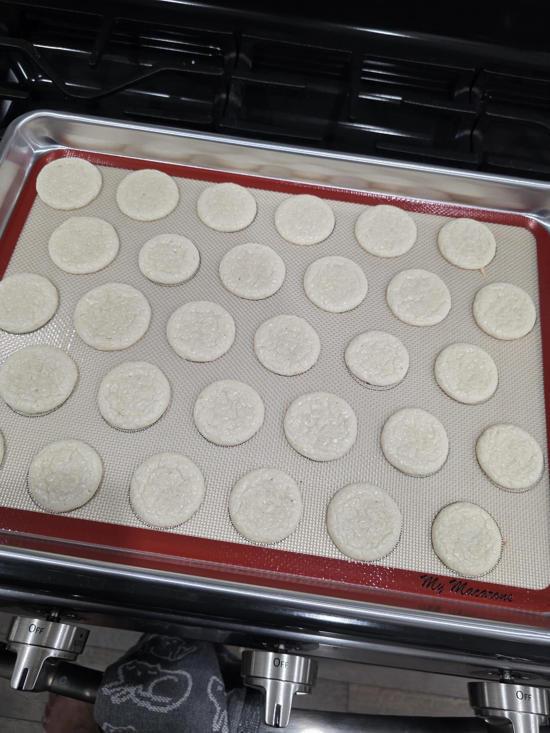 Honestly this has been the most frustrating lab experiment so far. I have taken to going over this with ChatGPT. People will say… to much whipping, not enough whipping, too high temperature, too low temp. With AI I have finally started to understand what is going on. I’m suffering with hollow shells. Not enough lift. Could be over whipped merengue… but I have to whip a very long time before I get the gloss look (and slightly stiffer). But what my actual problem was the eggs have a lot of water in them. So aging them overnight (Google it) reduces water content. Now they whip quicker and i can blend the flour/ sugar easier (less mixing).