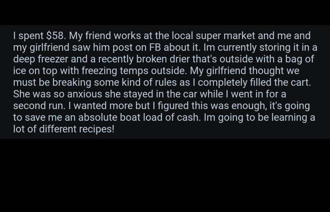 Storage aside, getting lucky with cheap meat can be a life saver. Once we were getting a bag of frozen chicken cutlets, and the butcher stops us and says they haver a whole pallet of the same cuts that got shipped in a bag labeled as another cut and needs them gone, so they were like a buck and a half per bag. Nothing wrong with the meat, but the entire bag was marked with info of a different product so it couldn’t be sold regularly.