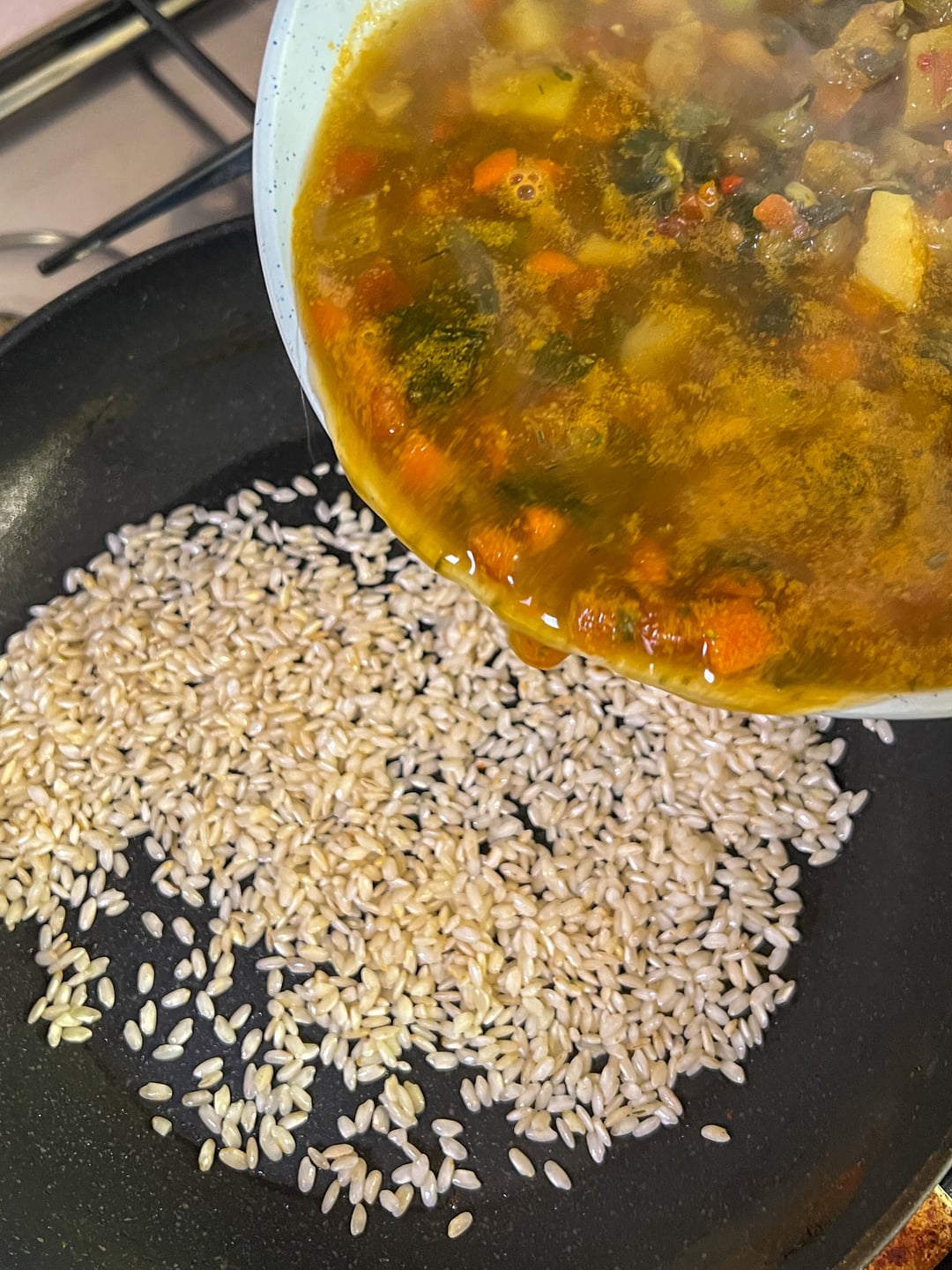 - 70-100g carnaroli, arborio or roma rice (depending on how hungry you are)