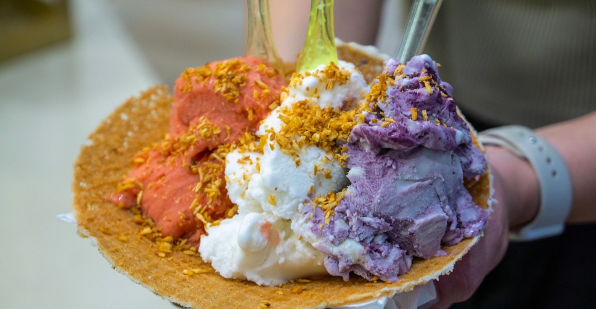 All the flavors at Moom Maam are dreamt up by Saran “Darwin” Wai, a scientist who decided to use his molecular biology degree to create ice cream. Moom Maam began as a pop-up stall at Wat Thai in Los Angeles before Wai began vending his artisanal gelato at Smorgasborg in the summer of 2023; a standalone shop in Torrance opened in 2024. Wai, who is Thai, prides himself on making flavors that feel nostalgic for Thai people but also gleefully experiments with ingredients he comes across as an Angeleno. The resulting ice cream is inventive, expressive, and singular in Los Angeles.