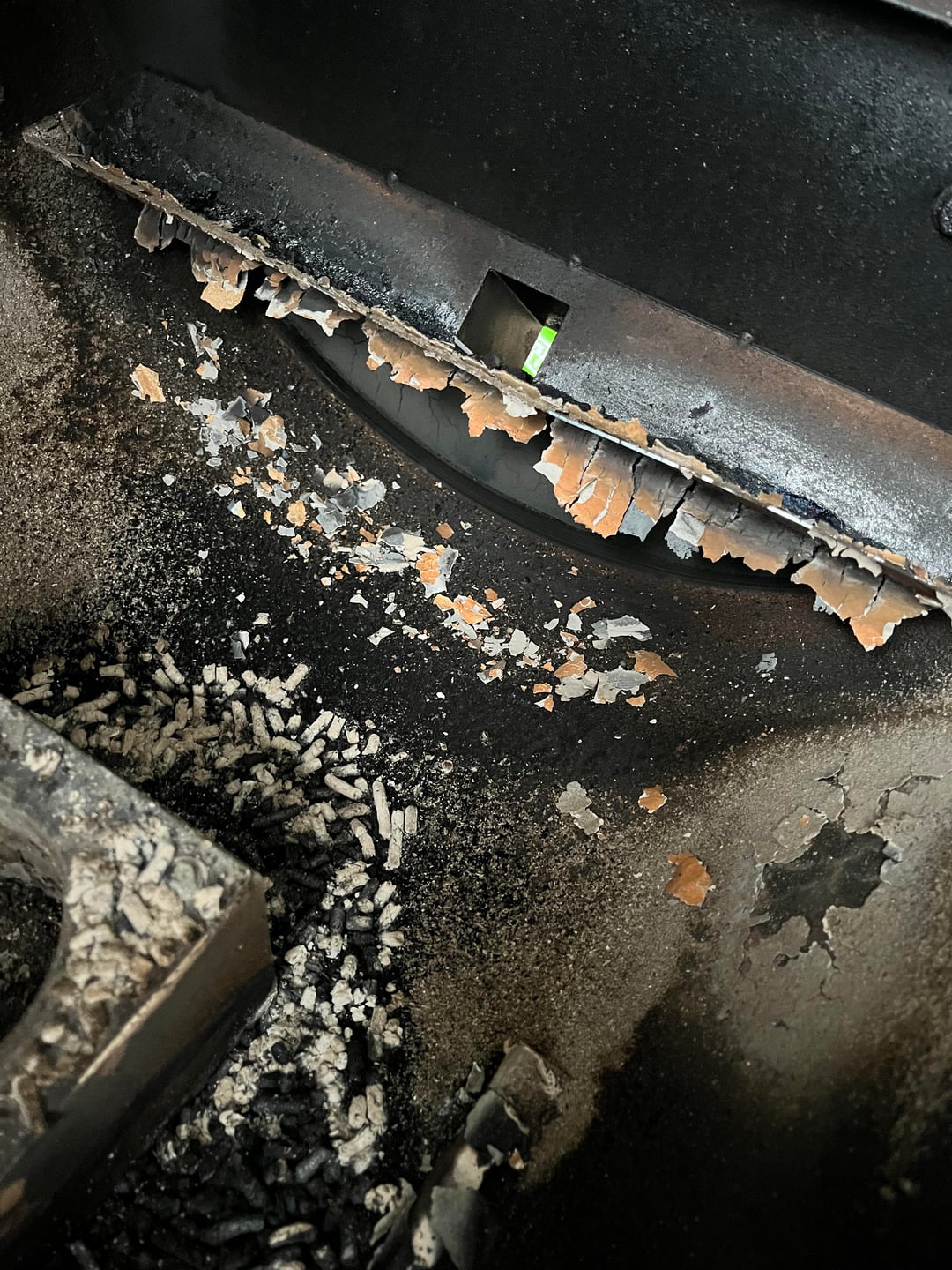 I cleaned it a couple of weeks previous and only used it once after for a short cook. I’m assuming it was a back burn. However, the pics I posted seem to show paper stuck all over the place…or something like paper. What has happened here? Any thoughts are greatly appreciated!!