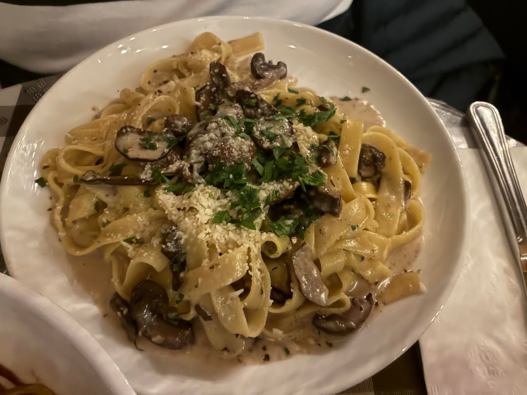 Been wanting to try this place for a while and I took my mom to an event around the corner for her birthday so we went here for dinner after. I got the wine and dine $19 special and chose the pappardelle with bolognese. The wine was a generous pour and the pasta was incredibly tasty. The sauce was really rich but not in an overwhelming way. My mom got the fettuccine fungi. I don’t order pasta out a lot because I like my own more but thethe prices are very reasonable and it was delicious. I am in queens so the Greenpoint location is not far from me. I’ll try there next.