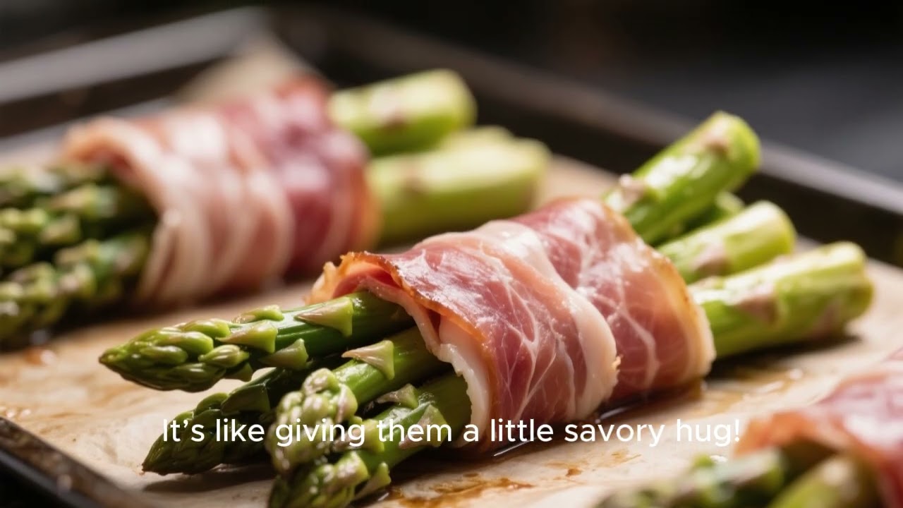 Hey foodies, today we’re making a super easy and elegant appetizer, prostudo wrapped asparagus. It’s perfect for any occasion. First, preheat your oven to 400° F or 200° C. Grab a bunch of fresh asparagus. Wash them and trim off those tough ends. Now for the fun part. Take a slice of prostido, cut it in half lengthwise, and wrap it around each asparagus spear. It’s like giving them a little savory hug. Leave the tips peeking out. Arrange your wrap spears on a baking sheet lined with parchment paper. Drizzle them with about two tablespoons of olive oil and a good crack of fresh black pepper. Pop them into the oven to bake for 12 to 15 minutes. You want that prostudo to get nice and crispy and the asparagus to be perfectly tender. Once they’re out, immediately sprinkle them with grated Parmesan cheese for a little extra zing. You can add some lemon zest or a drizzle of balsamic glaze. And there you have it. A delicious, impressive dish that’s incredibly simple to make.