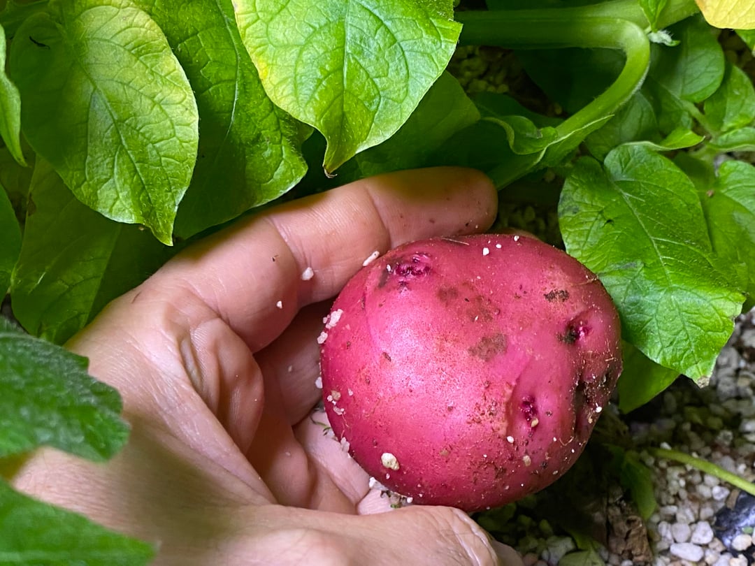 Multiplied from an old 'tater that started to sprout. Media is 100% perlite flooded once a day. I was able to harvest them without really damaging the plant, so it should grow more.