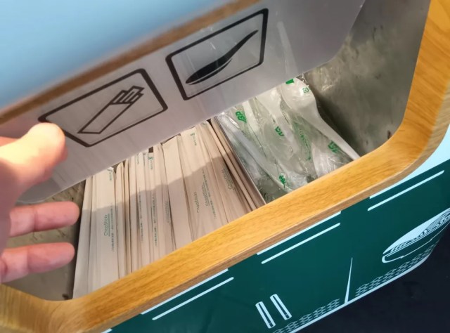 Below the slot where you get your food is another compartment from which you can grab chopsticks and, if you want, a spoon.