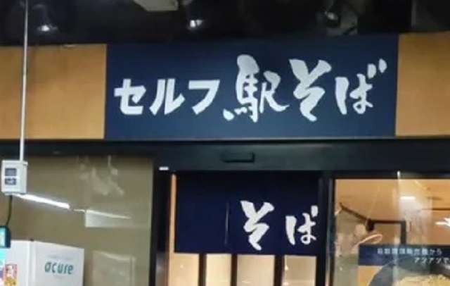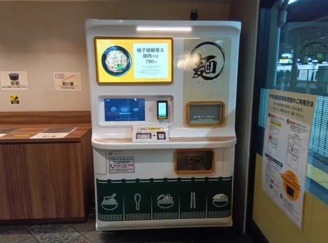 It’s kind of unusual for two different restaurants that specialize in the same kind of food to share a platform like this, but that’s not the only unique aspect to this arrangement, as indicated by the second soba restaurant’s name, Self Eki Soba, meaning “Self Station Soba.”