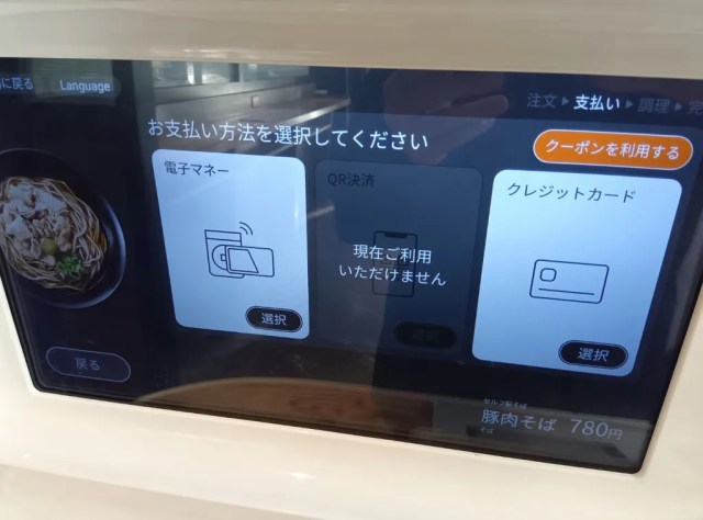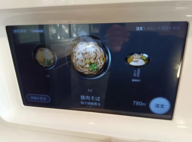 We decided to order the soba with pork, and the screen kept us updated on its cooking progress.