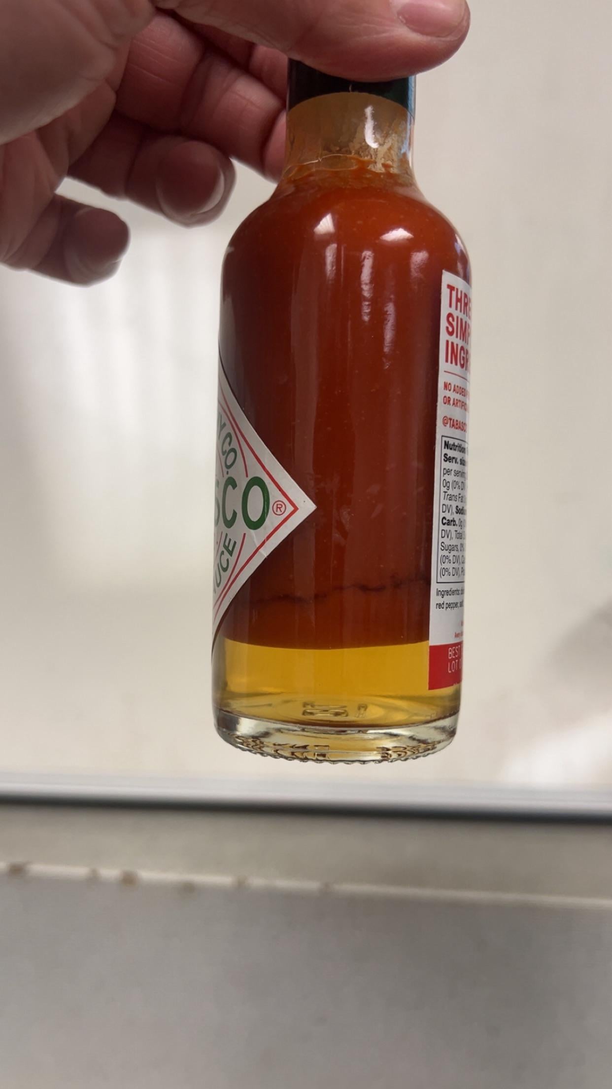 This happens if you keep it in a pantry in potentially a warmer house or spot. It’s not bad, just shake it up. Just vinegar separation. I keep mine in the fridge so it’s far less likely to do this, and I prefer cold Tabasco.