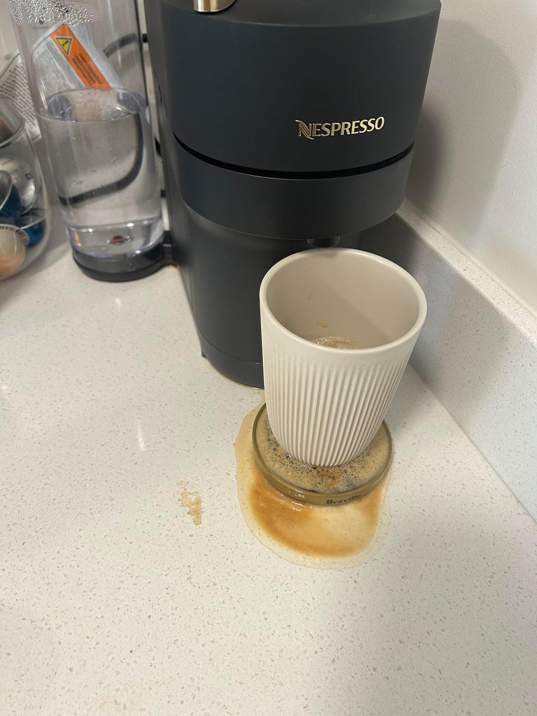 why is this happening?? It also leaks from the bottom. Drip tray fills up. I’ve rinsed & descaled it. Just thought I’d post it here before I call nespresso.