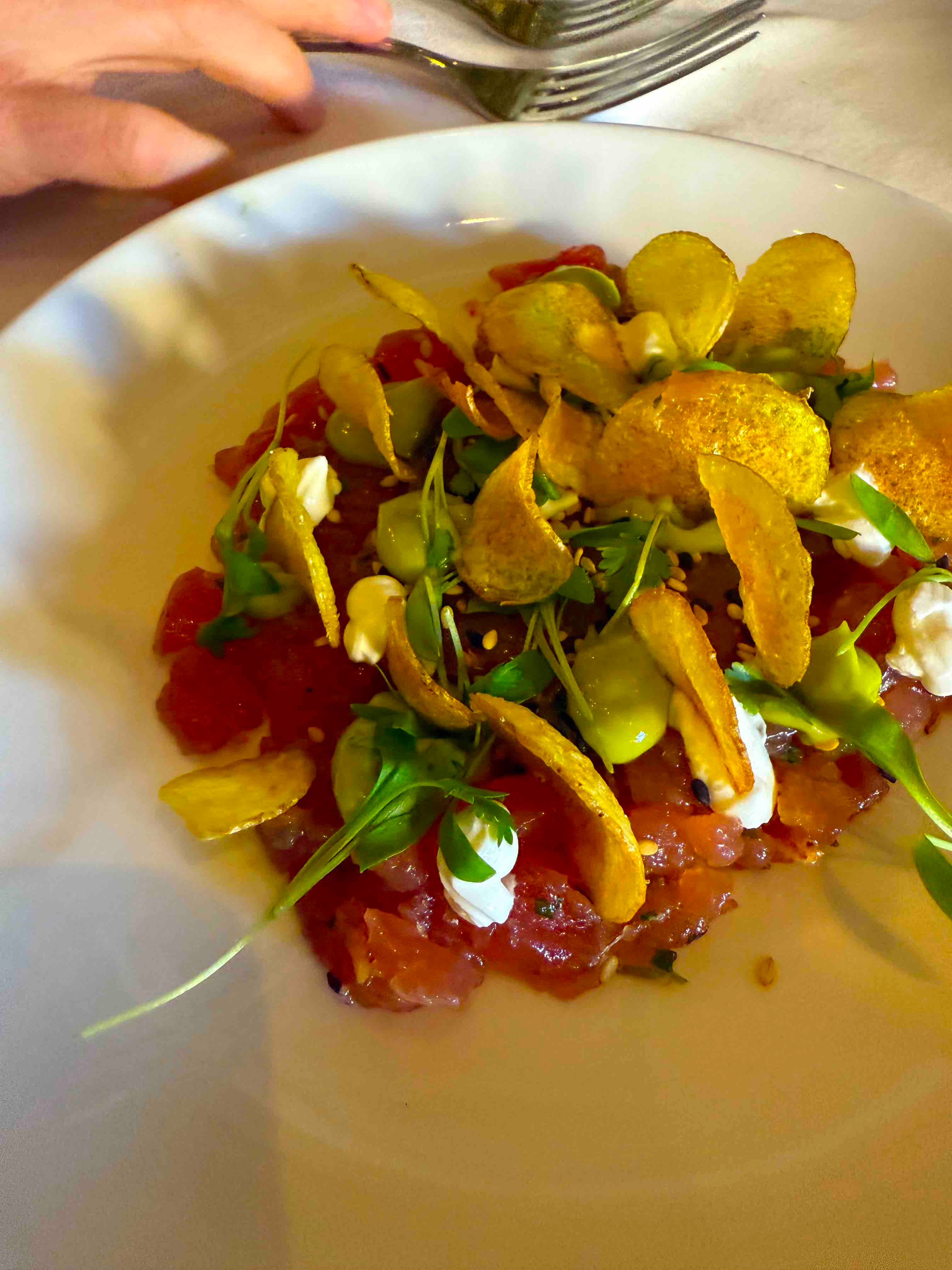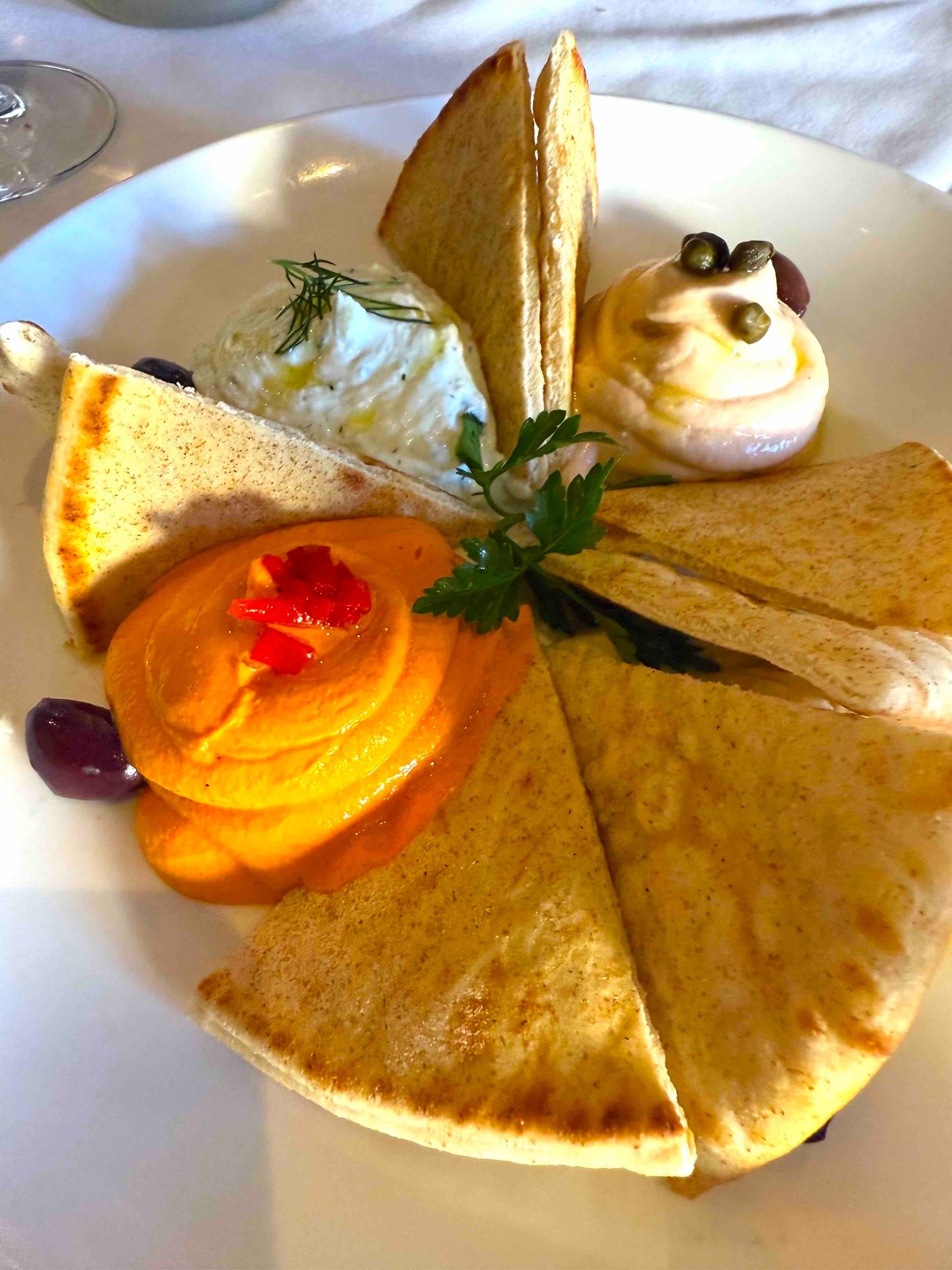Each table gets a nice appetizer of pita bread, radishes, olives and hummus. We loved that everyone got to start their meal off with a nice variety of Mediterranean inspired hors d’oeuvres. There are also great cocktails to choose from, including the Mykonos Breeze with passionfruit, vodka, velvet falernum and lemon and Meet Me in Carfu with lime, tequila, jalapeno and pineapple.