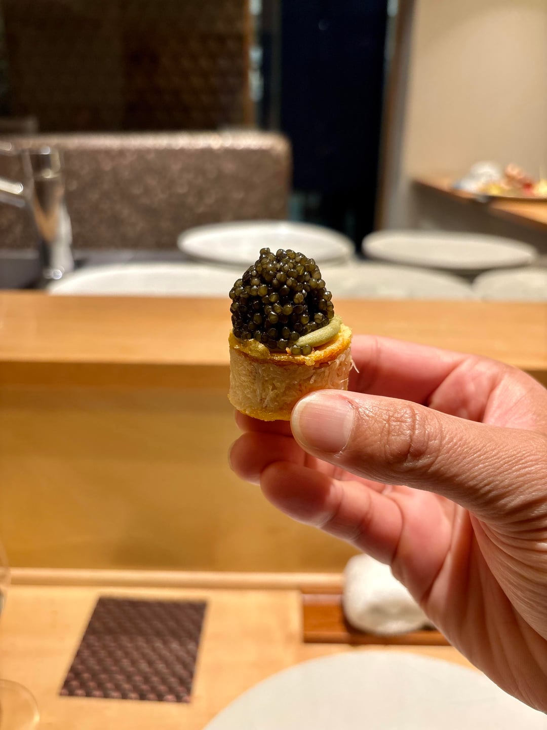A generous amount of caviar for the opening bite. Rich and luxurious.