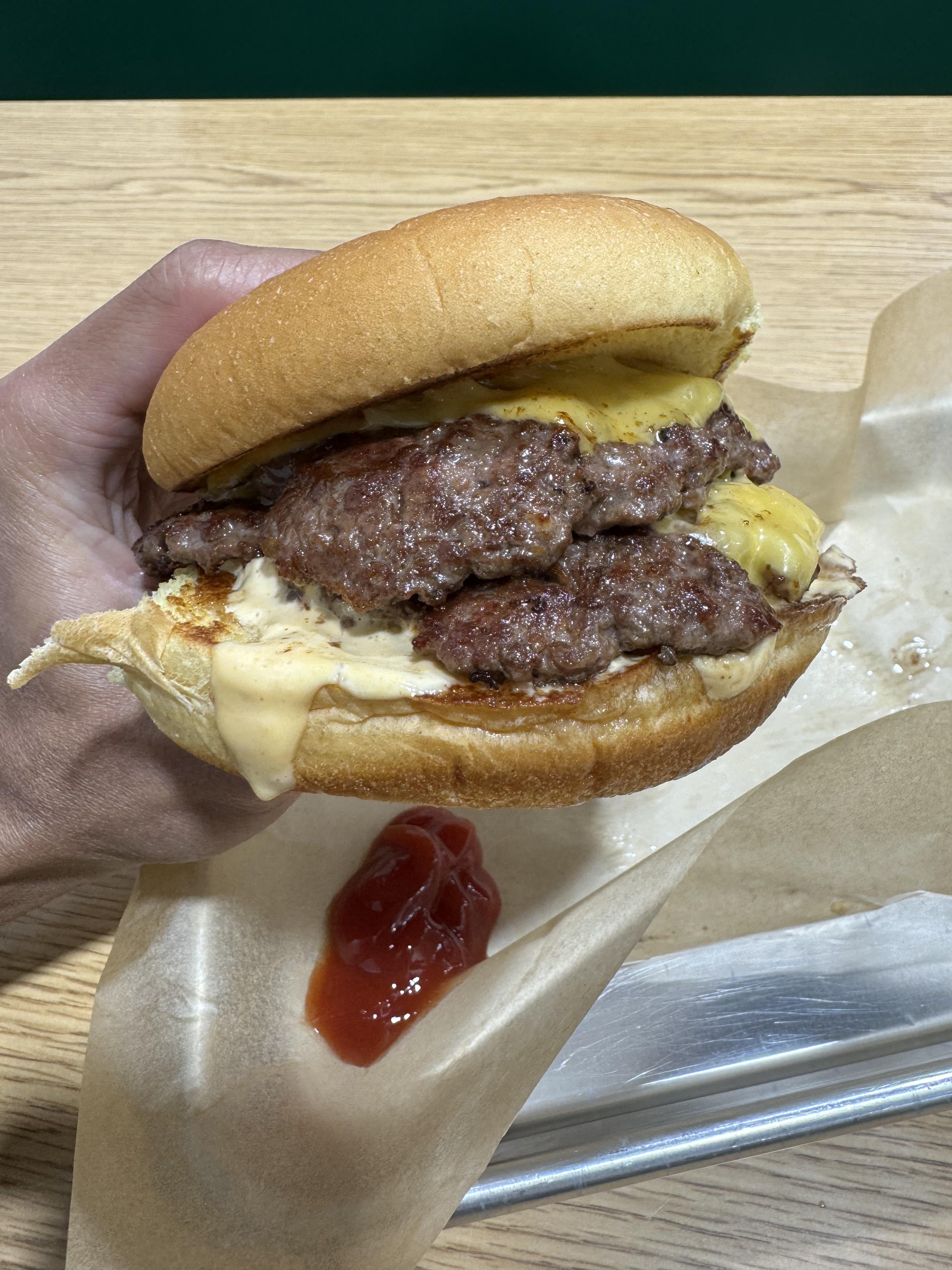 I can do without what appears to be a mayo cum drop on the bottom bun, but otherwise an easy smash