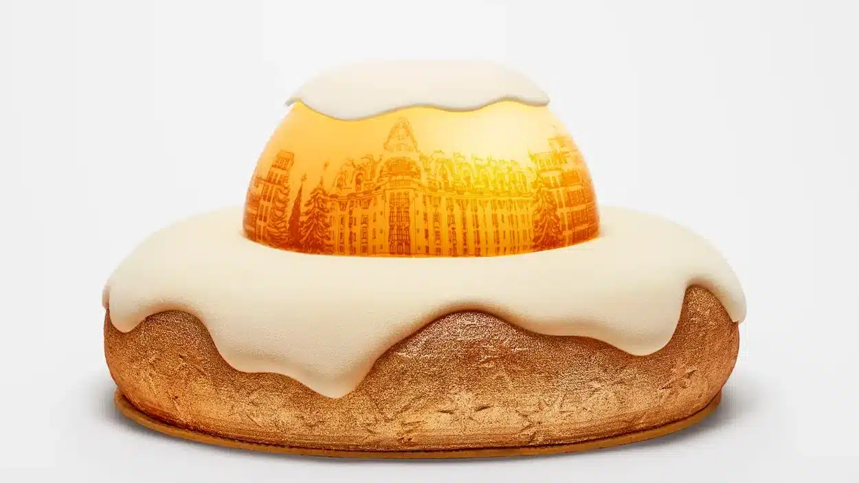 For Christmas 2025, the Mandarin Oriental Lutetia Paris unveils a luminous creation by its head pastry chef, Nicolas Guercio: the “Lumière” log. Conceived as a tribute to Parisian elegance, this sparkling work of art is inspired by the end-of-year illuminations and the city’s golden reflections. Beneath a delicately marbled white and copper chocolate shell lies a subtle composition: Tahitian vanilla mousse, grapefruit cookie, Nepalese black tea infusion and a citrus heart. Refined, floral and slightly tart, this log offers a surprisingly modern sensory experience. Visually spectacular, “Lumière” embodies the spirit of Lutetia: audacity, refinement and emotion. A piece to be enjoyed by eight, in a spirit of celebration and sharing.