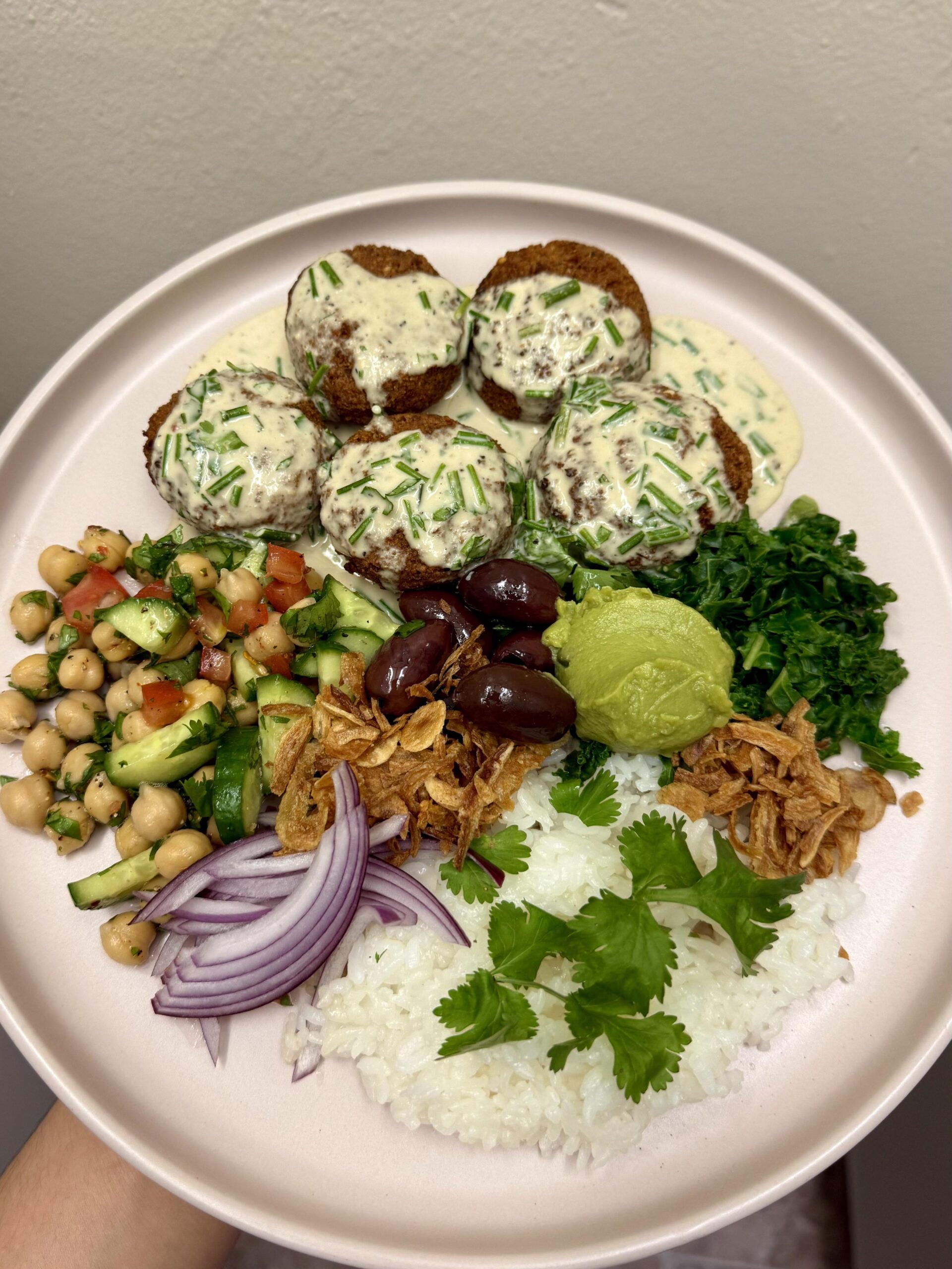 Ashamed_Mushroom_607 2 months ago Looks FANTASTIC! I could eat this every day for dinner lolHow’d you prepare the falafel? Bake/fry or air fry? Looks like it has some crunch to it.