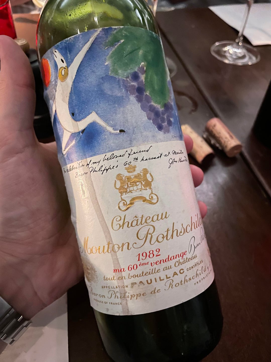 Tasted two special wines earlier this year: 1982 Mouton Rothschild and 1982 Margaux. This was my second time tasting 1982 Mouton and my first go at the Margaux. With these older ‘legendary’ bottles like the Mouton, you really have to get a pristine bottle for it to be lights out…heard there's lots of bottle variation. The Mouton cork looked fully seeped through which didn’t give me much hope. Nevertheless, the wine was amazing after 30-40min in decanter, unfolding its layers beautifully…but it didn’t match the silky texture and concentrated red and black fruit aromas I got from opening the same bottle previously. The menthol finish here lasted 30+ seconds though and I loved it.