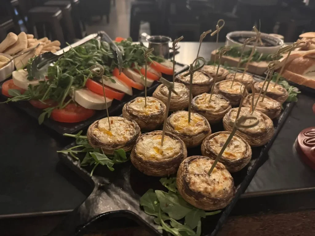 In addition to Rustic Cork’s namesake wine listing featuring wines from Columbia and Yakima valleys, the wine bar has a variety of food offerings from shareables (charcuterie boards, stuffed mushrooms, prosciutto wrapped dates, baked cheeses, and truffle popcorn, to name a few) to entrees including flatbreads, salads, paninis, and pita wraps.