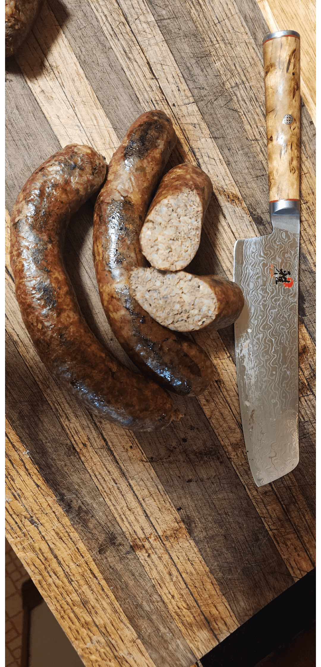 Homemade with venison, deer liver, pork shoulder , rice and the trinity. Filling is cooked so smoked at 225 on the BGE medium for one hour for color and texture. Out of this world!
